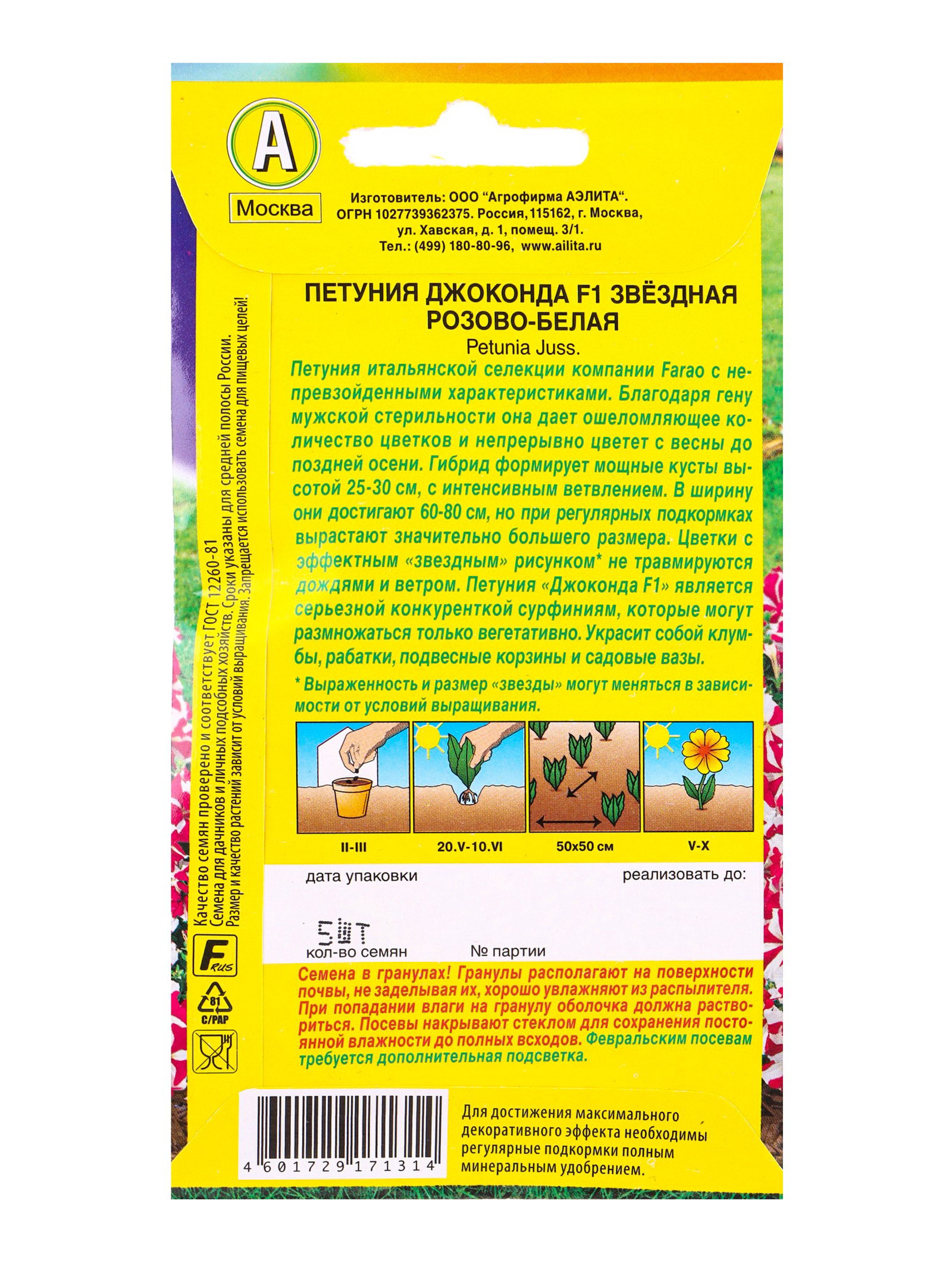 Семена цветов Петуния Джоконда F1 звездная розово-белая, Агрофирма АЭЛИТА, Италия