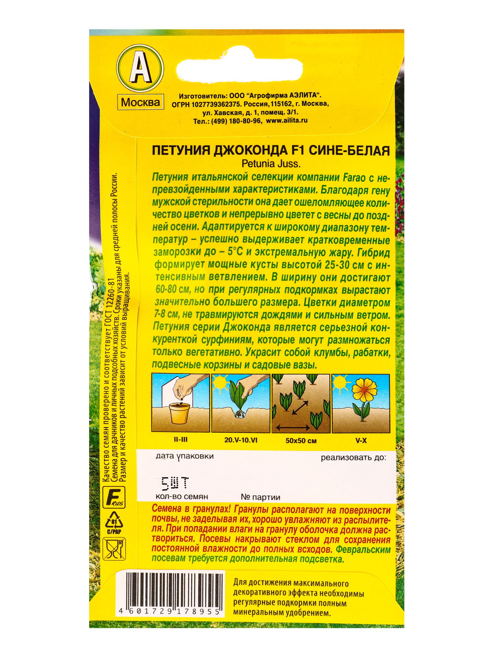 Семена цветов Петуния Джоконда F1 сине-белая, Агрофирма АЭЛИТА, Италия