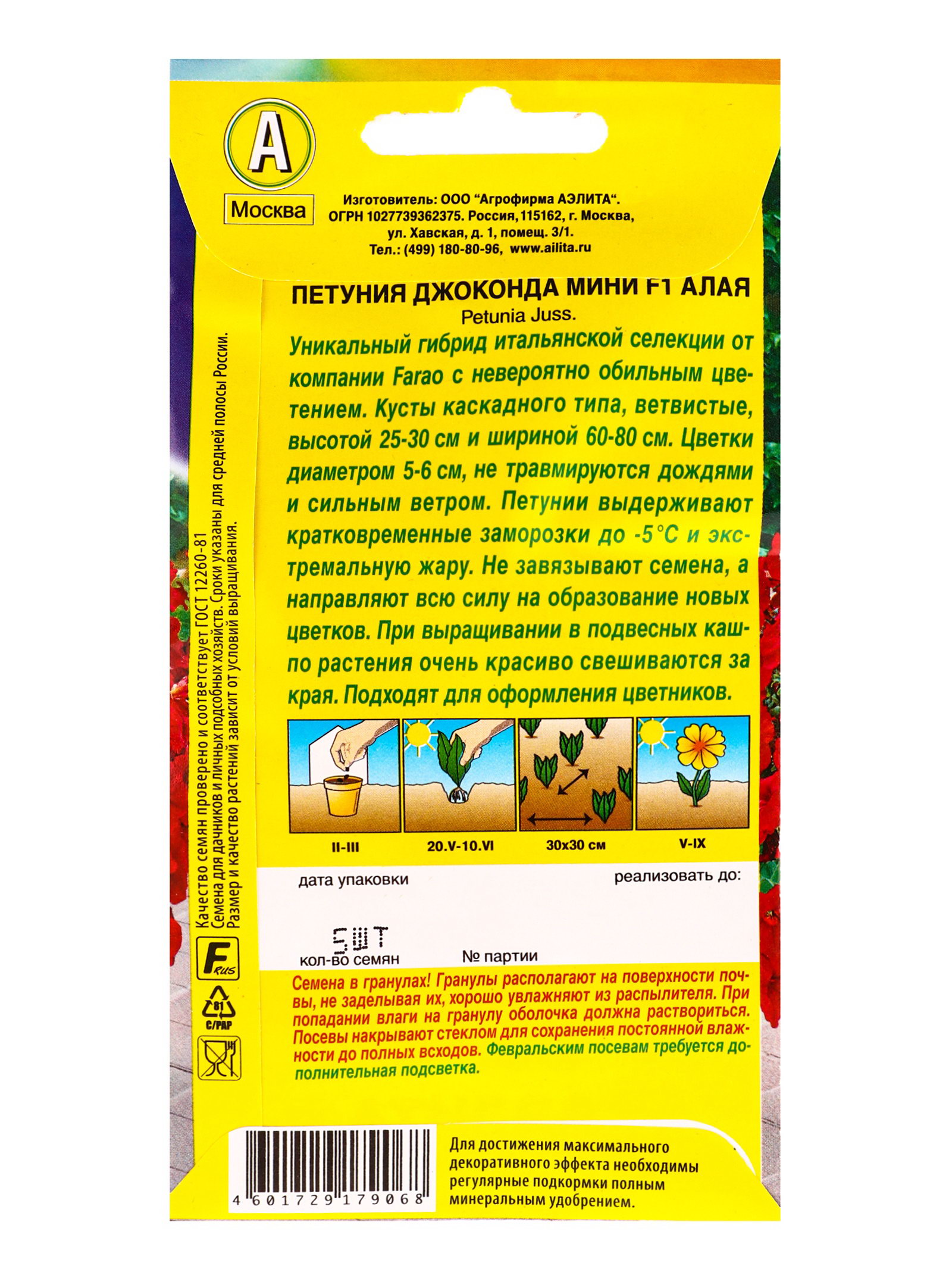 Семена цветов Петуния Джоконда мини F1 алая, Агрофирма АЭЛИТА, Италия