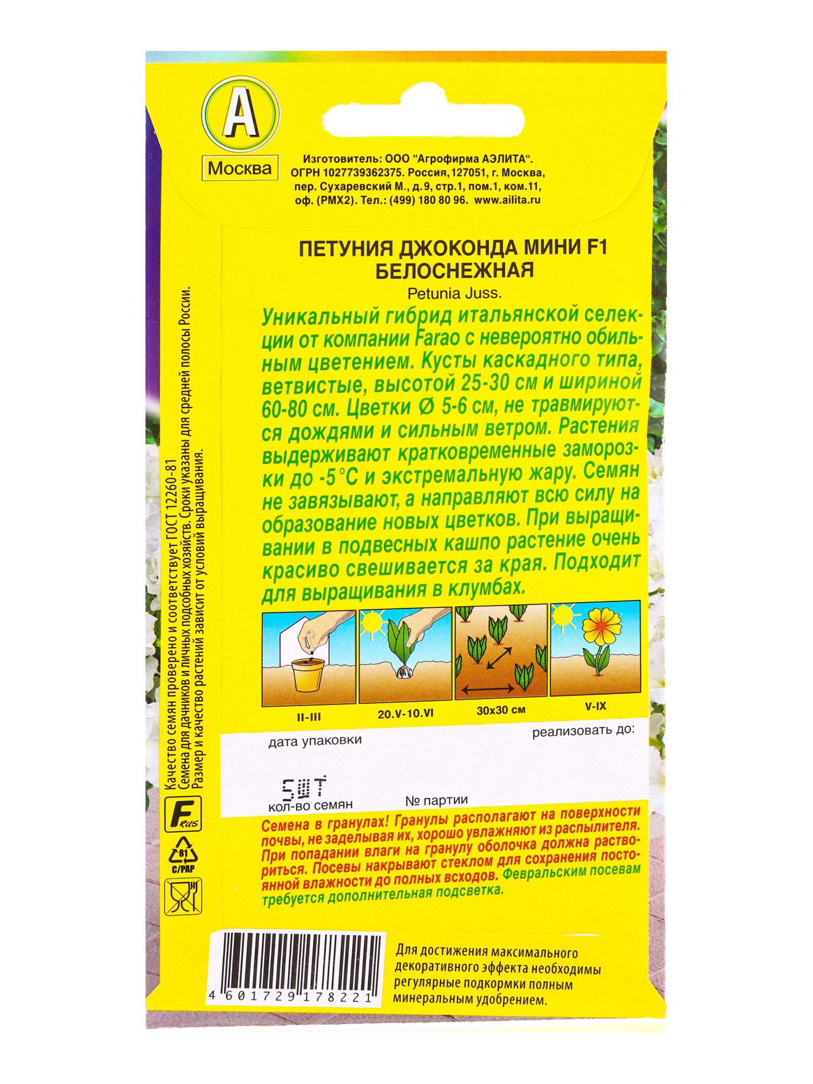 Семена цветов Петуния Джоконда мини F1 белоснежная, Агрофирма АЭЛИТА, Италия