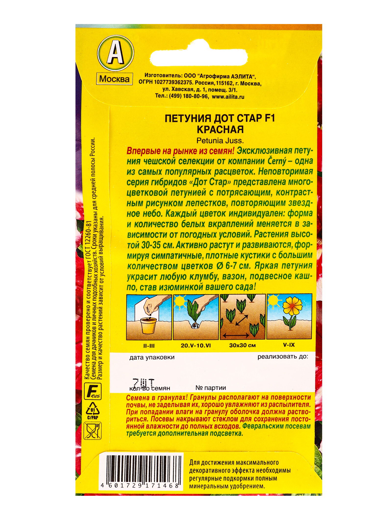 Семена цветов Петуния Дот Стар F1 красная, Агрофирма АЭЛИТА, Чехия