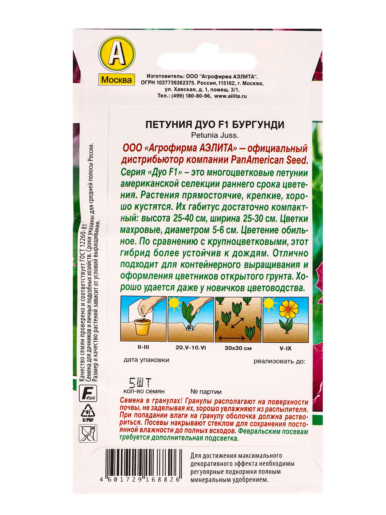 Семена цветов Петуния Дуо F1 бургунди, Агрофирма АЭЛИТА, Коста-Рика