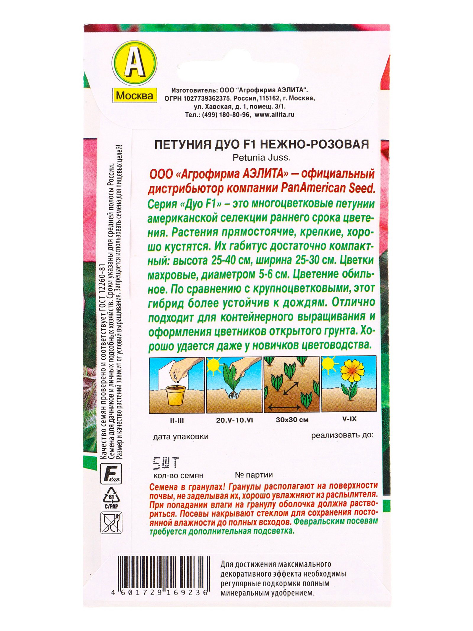 Семена цветов Петуния Дуо F1 нежно-розовая, Агрофирма АЭЛИТА, Коста-Рика