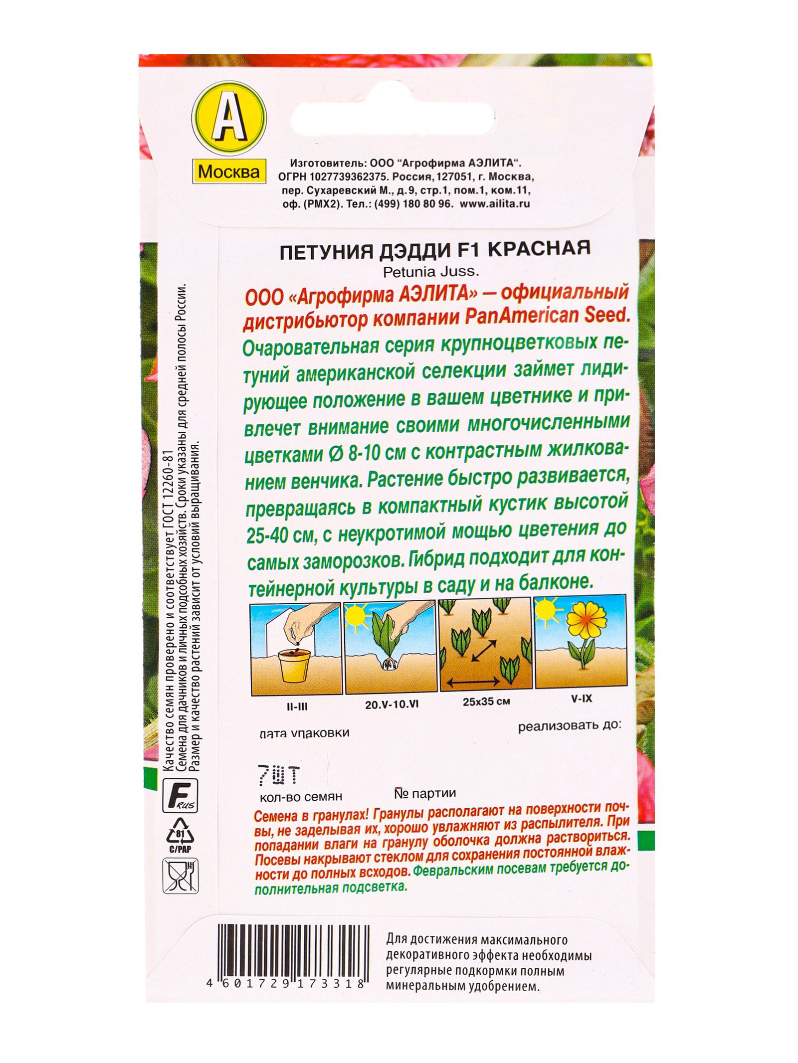 Семена цветов Петуния Дэдди F1 красная, Агрофирма АЭЛИТА, Коста-Рика