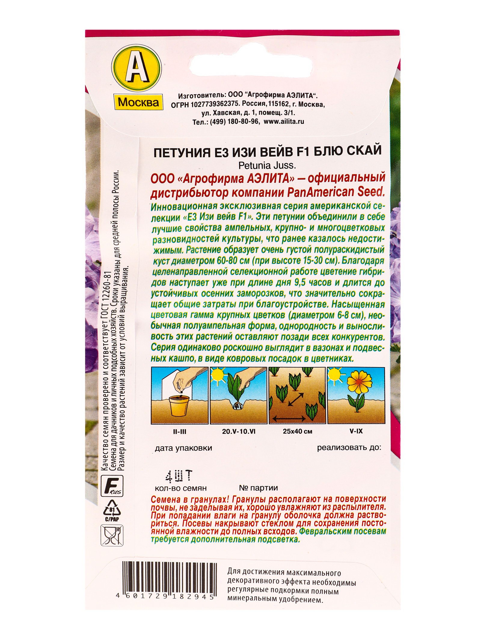 Семена цветов Петуния Е3 Изи вейв F1 блю скай, Агрофирма АЭЛИТА, Коста-Рика