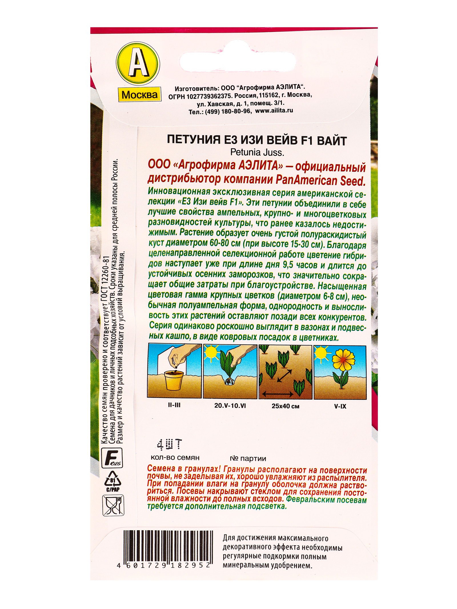 Семена цветов Петуния Е3 Изи Вейв F1 вайт, Агрофирма АЭЛИТА, Коста-Рика