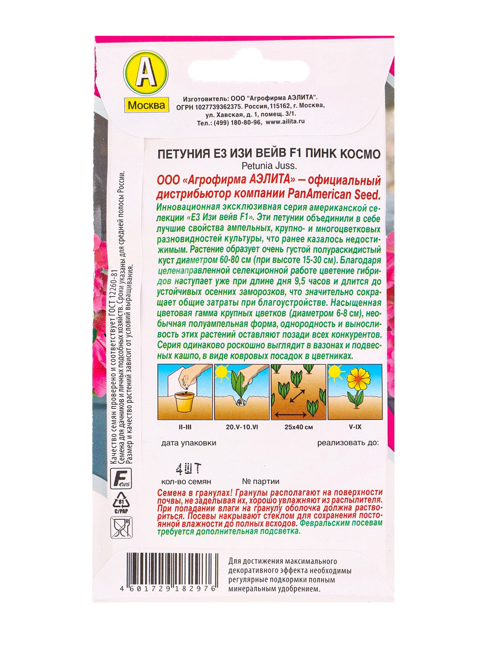 Семена цветов Петуния Е3 Изи Вейв F1 пинк космо, Агрофирма АЭЛИТА, Гватемала