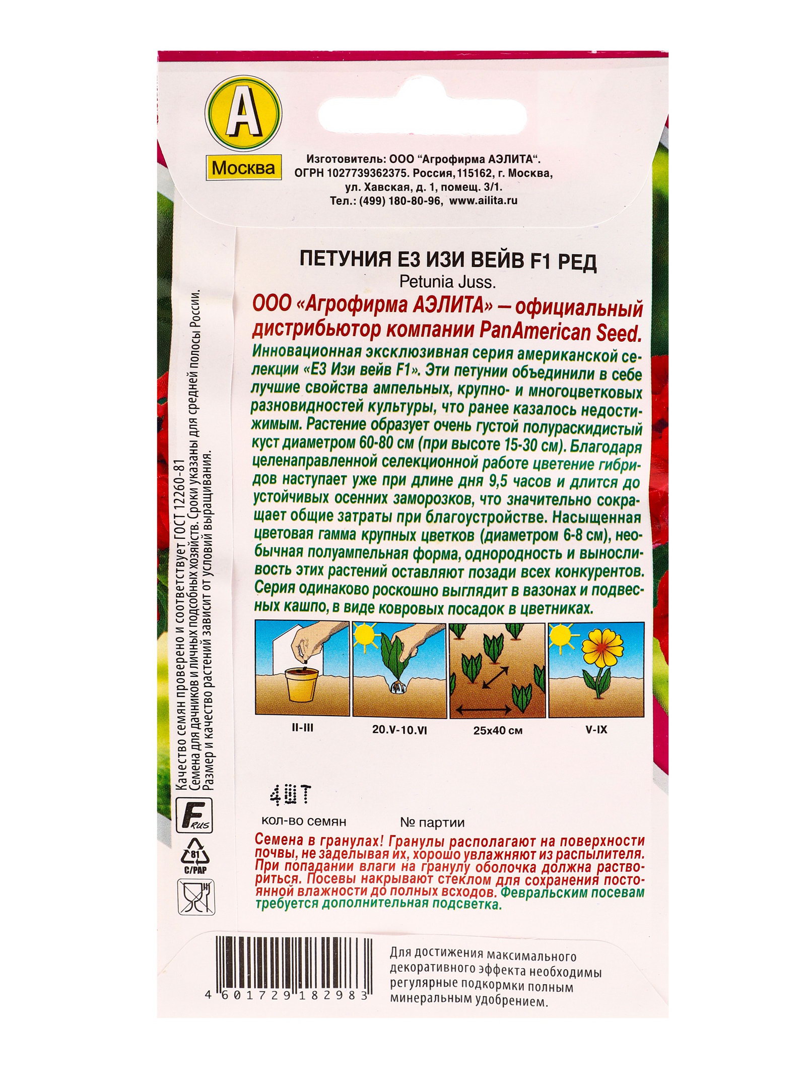 Семена цветов Петуния Е3 Изи Вейв F1 ред, Агрофирма АЭЛИТА, Коста-Рика