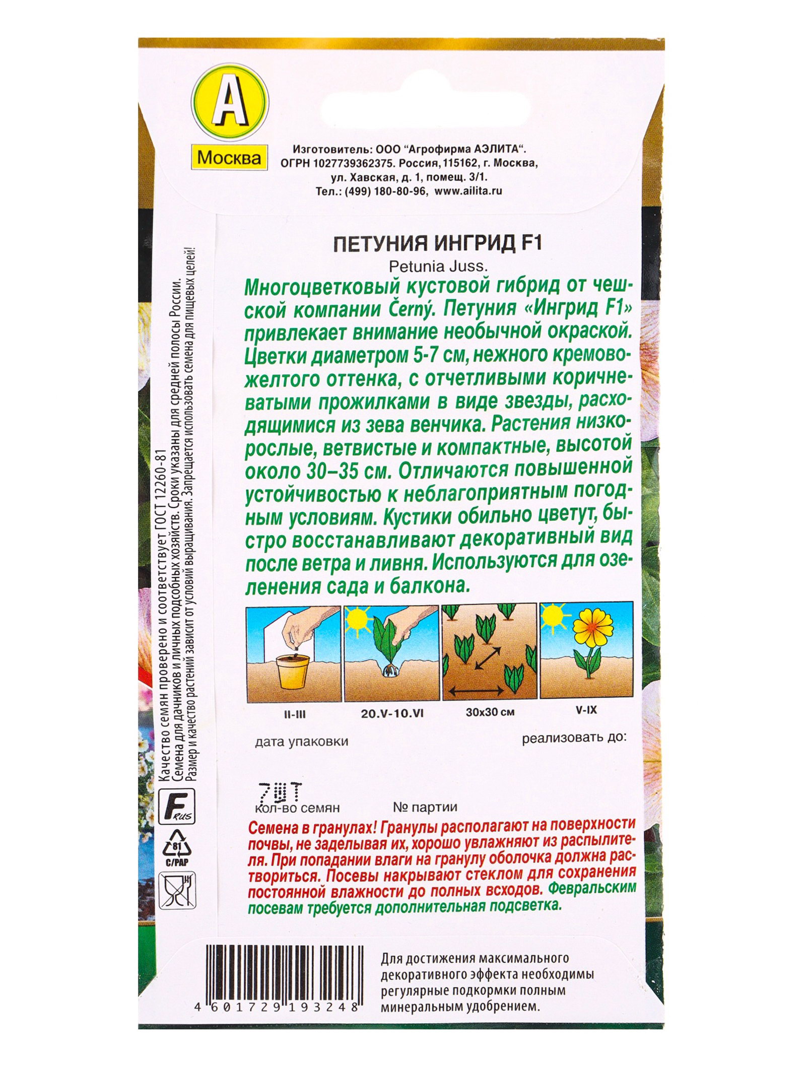 Семена цветов Петуния Ингрид F1 многоцветковая, Агрофирма АЭЛИТА, Чехия