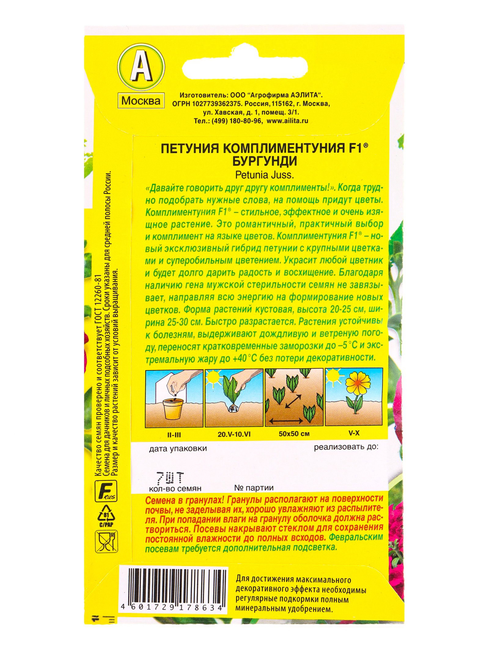 Семена цветов Петуния Комплиментуния F1 бургунди крупноцветковая, Агрофирма АЭЛИТА, Нидерланды