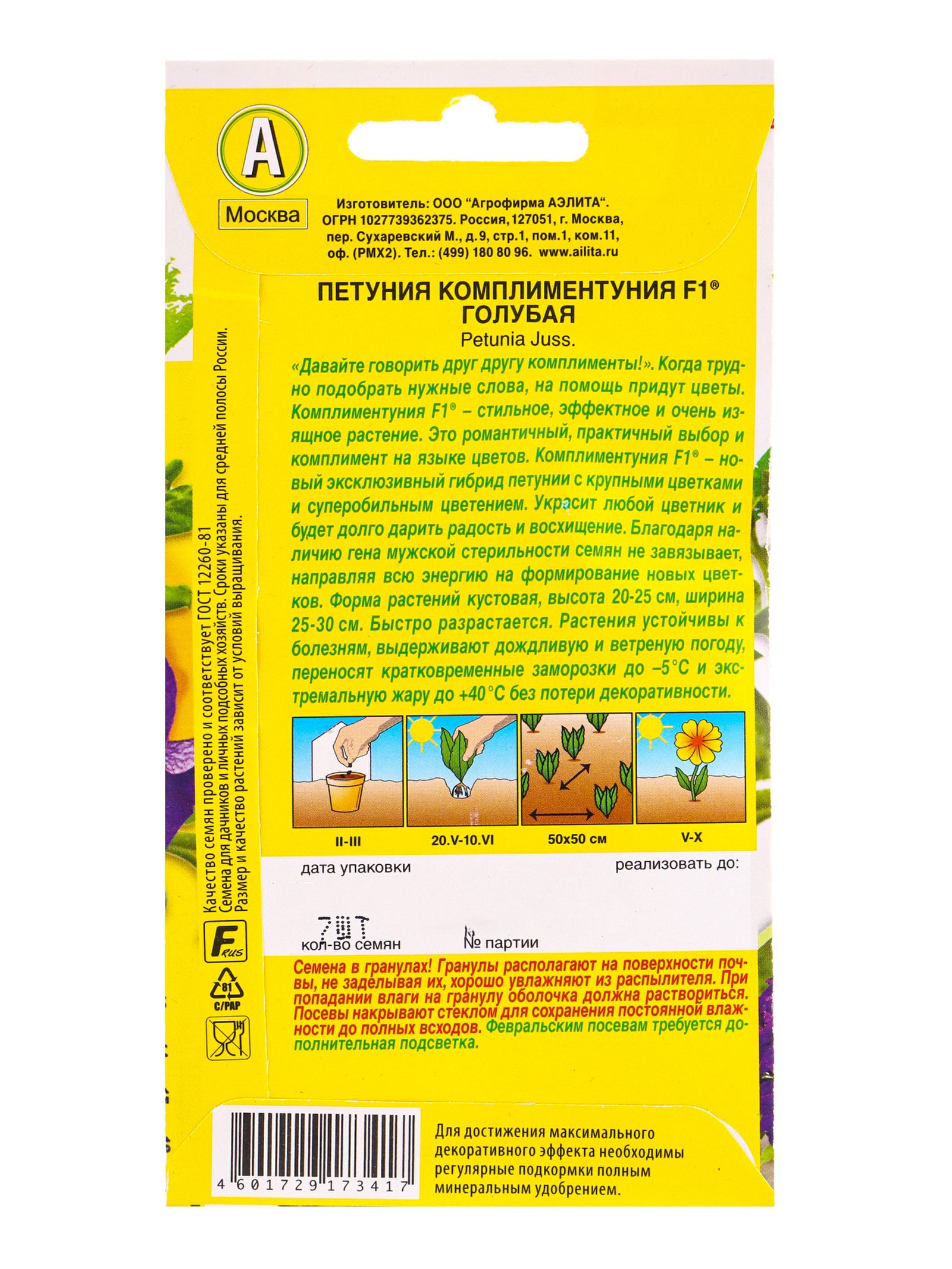Семена цветов Петуния Комплиментуния F1 голубая крупноцветковая, Агрофирма АЭЛИТА, Индонезия