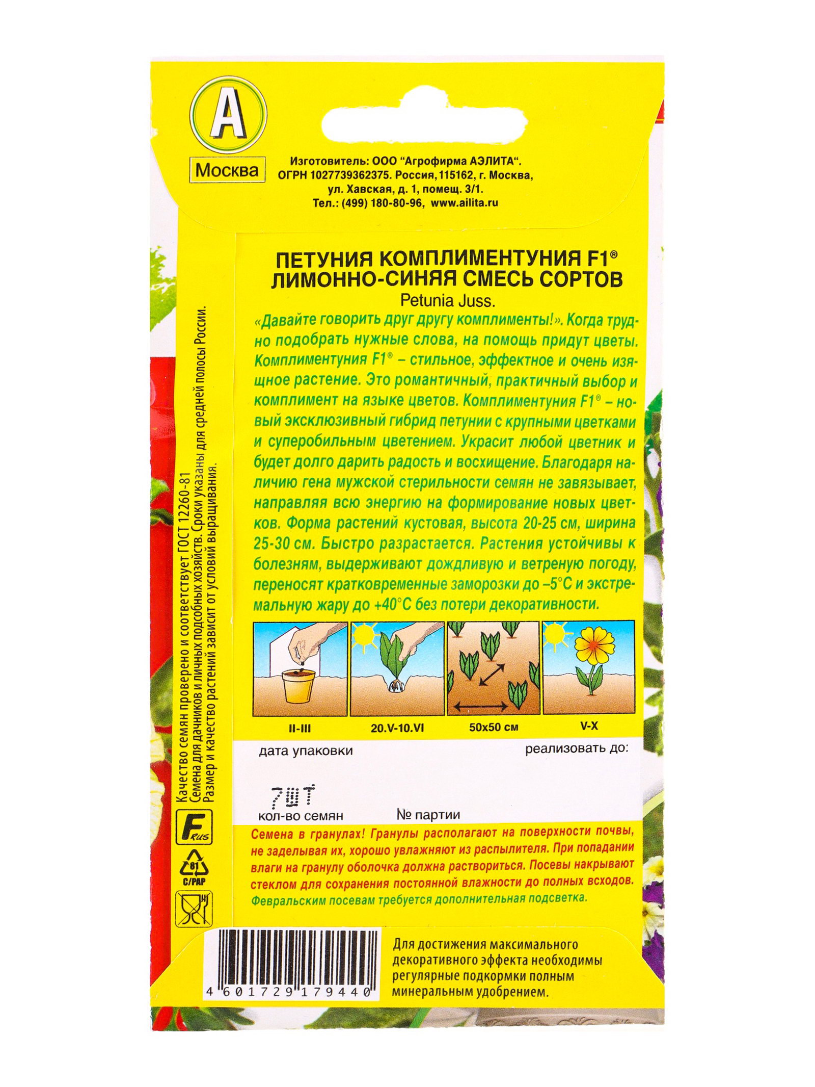 Семена цветов Петуния Комплиментуния F1 лимонно-синяя смесь крупноцветковая, Агрофирма АЭЛИТА, Индия