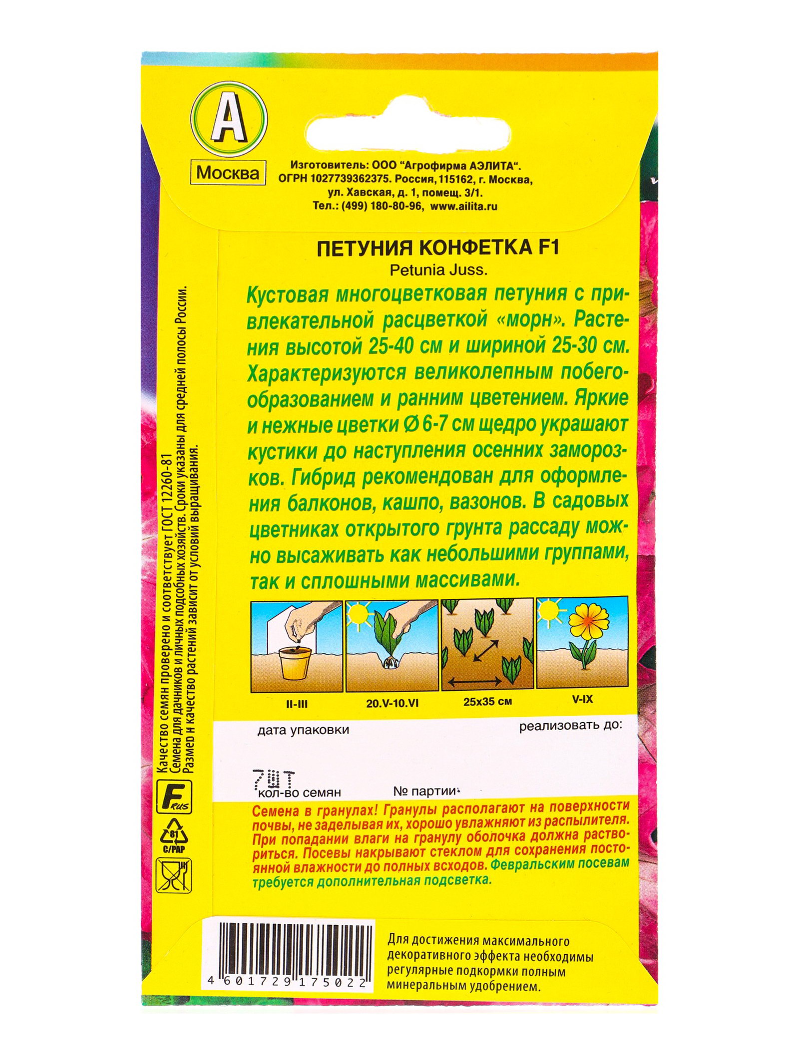 Семена цветов Петуния Конфетка F1 многоцветковая, Агрофирма АЭЛИТА, Коста-Рика