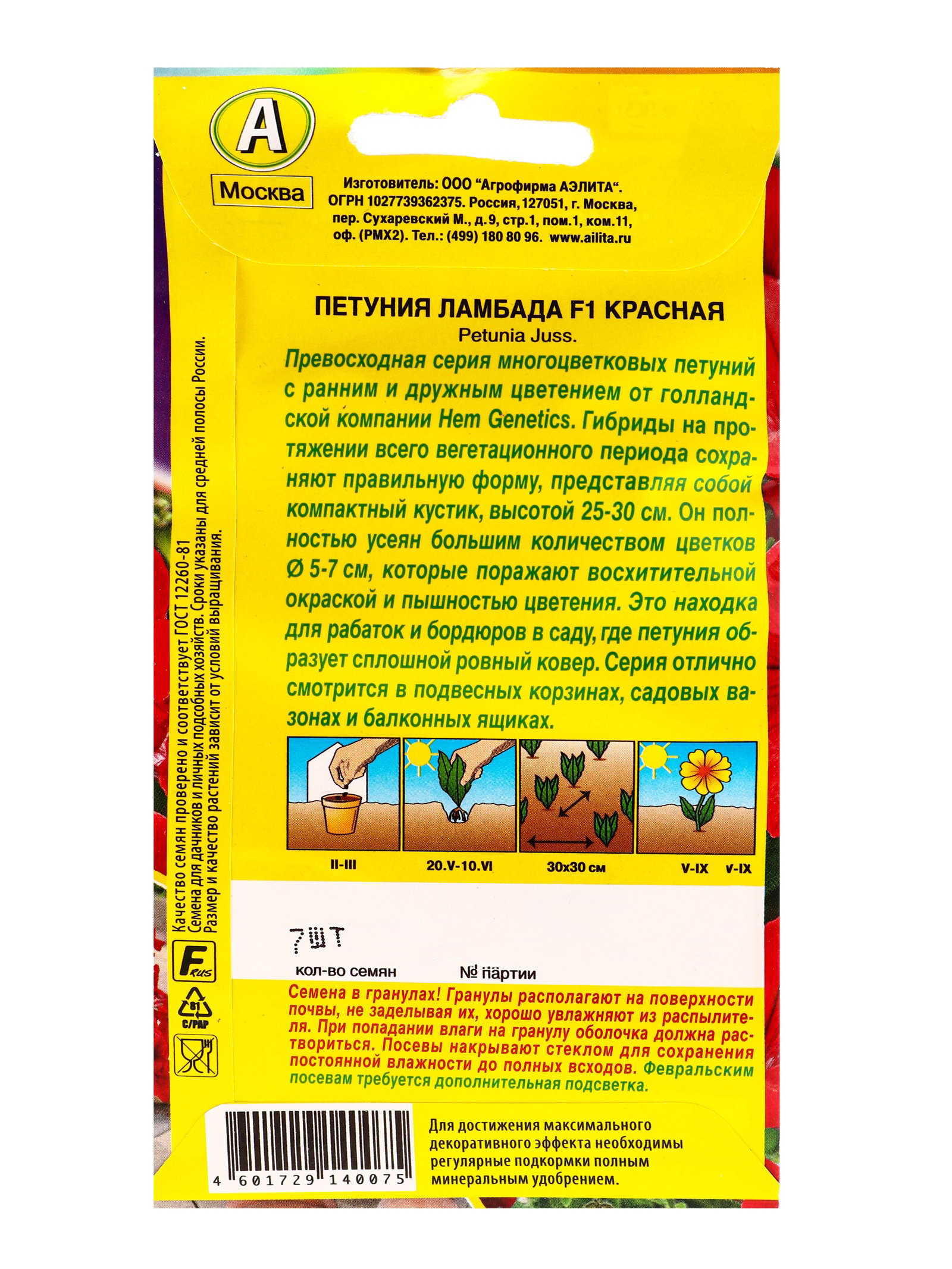 Семена цветов Петуния Ламбада F1 красная многоцветковая, Агрофирма АЭЛИТА, Индонезия