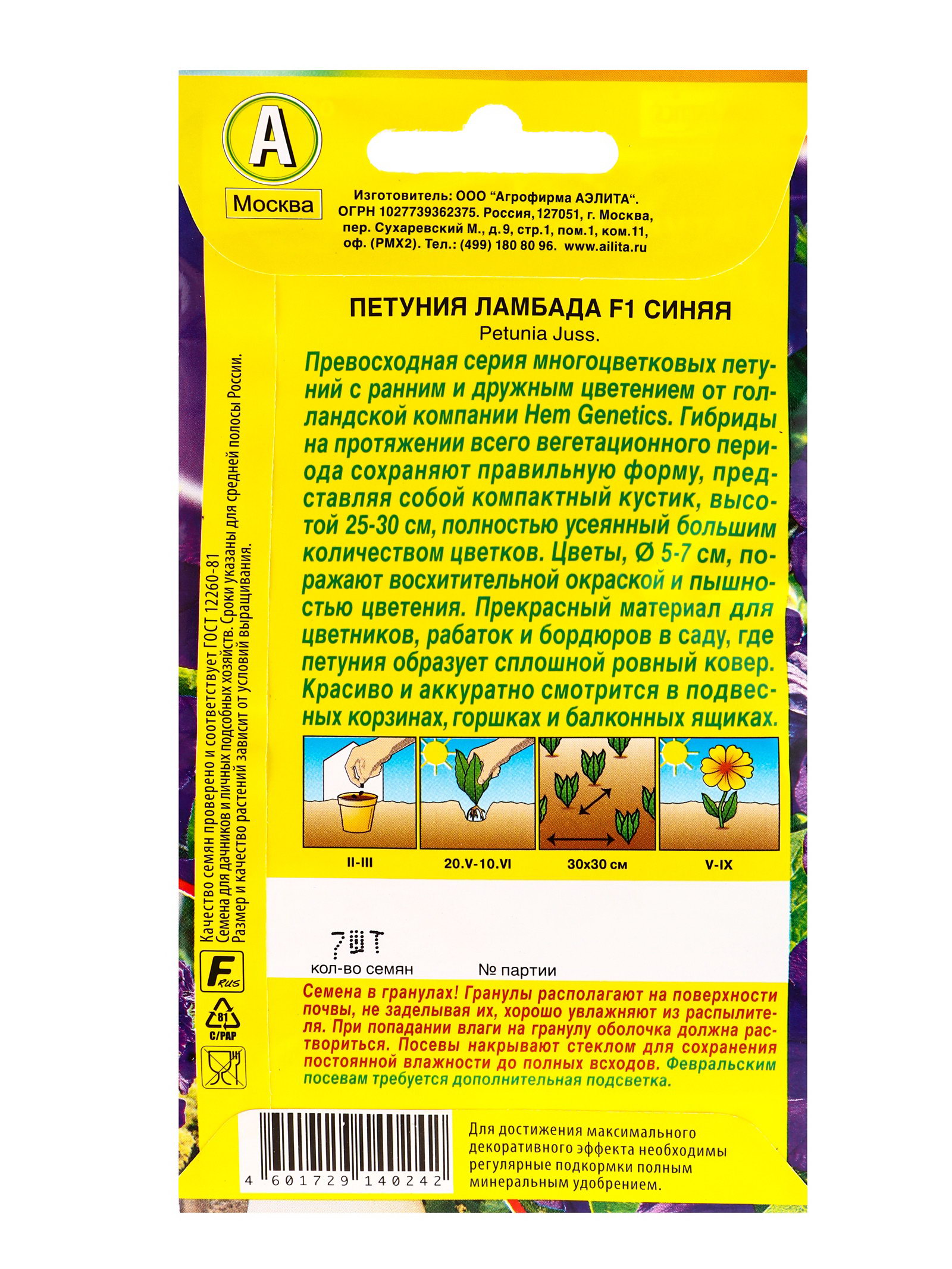 Семена цветов Петуния Ламбада F1 синяя многоцветковая, Агрофирма АЭЛИТА, Индонезия