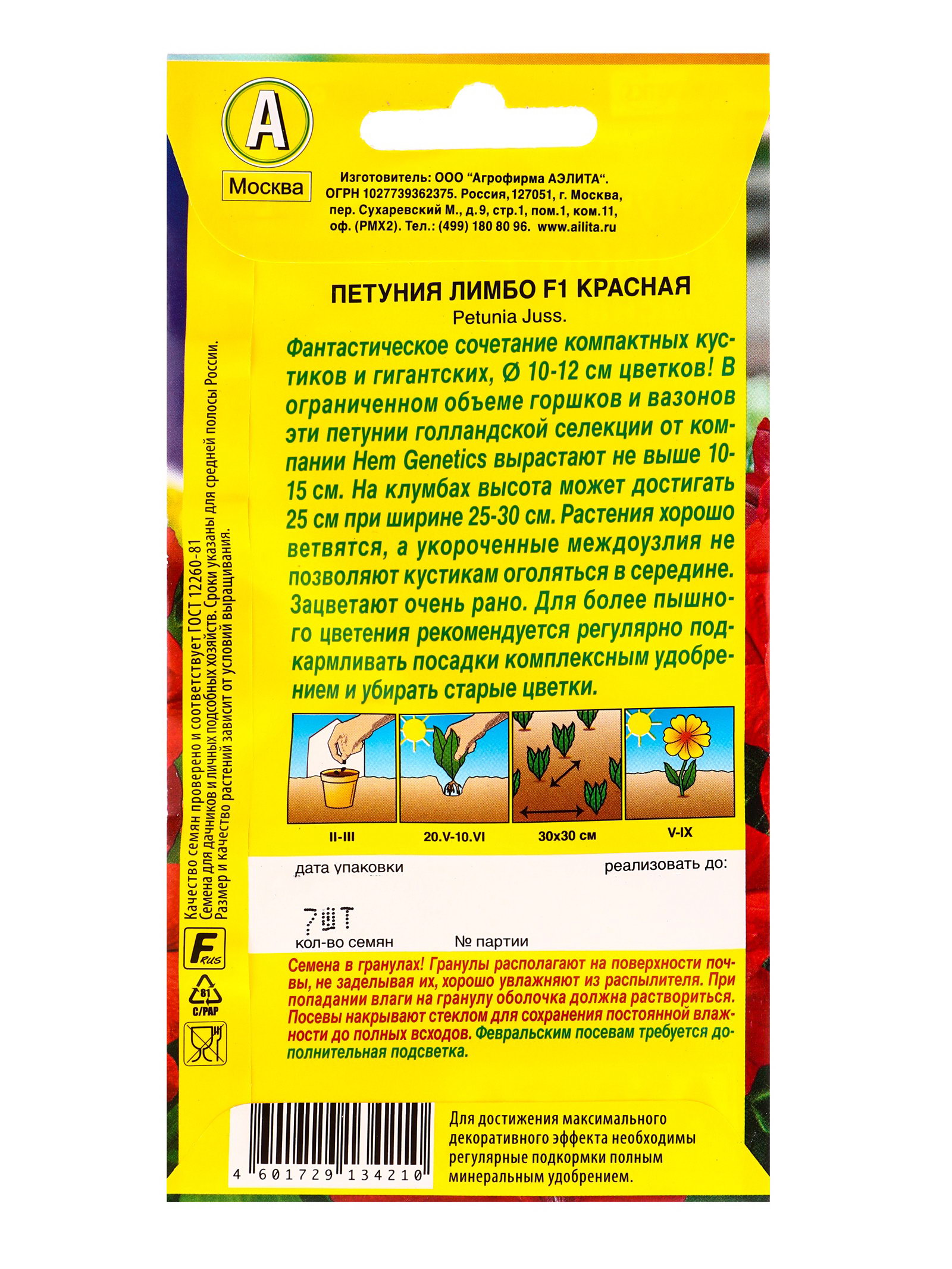 Семена цветов Петуния Лимбо F1 красная крупноцветковая, Агрофирма АЭЛИТА, Индонезия