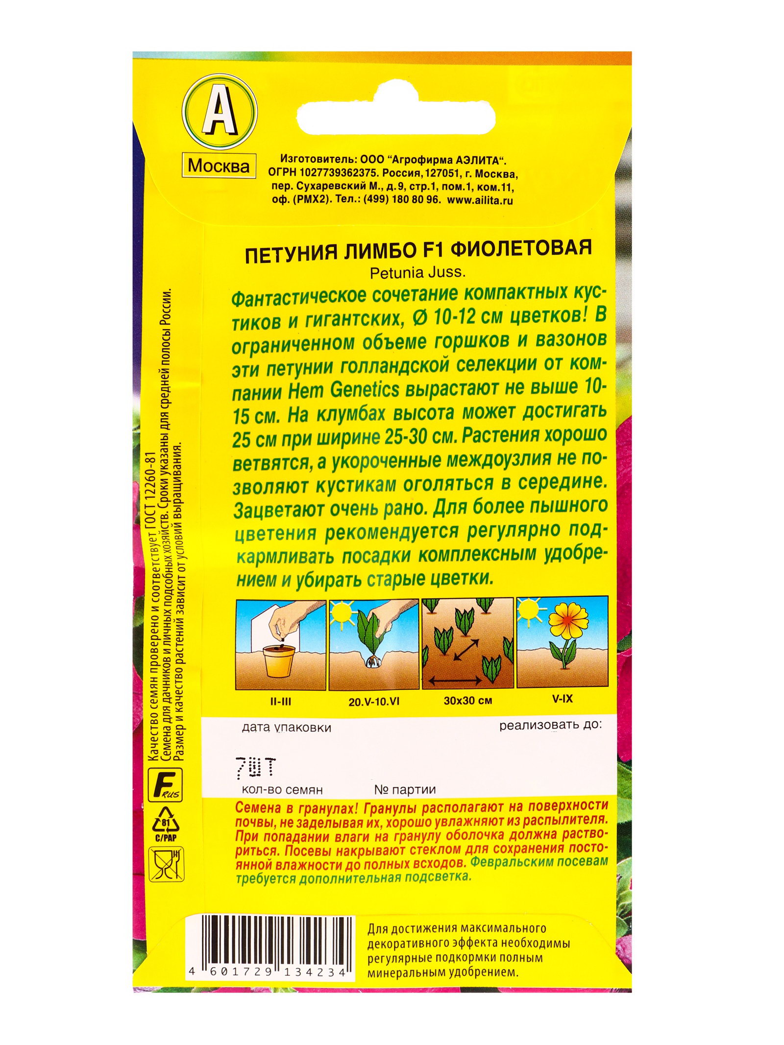 Семена цветов Петуния Лимбо F1 фиолетовая крупноцветковая, Агрофирма АЭЛИТА, Кения