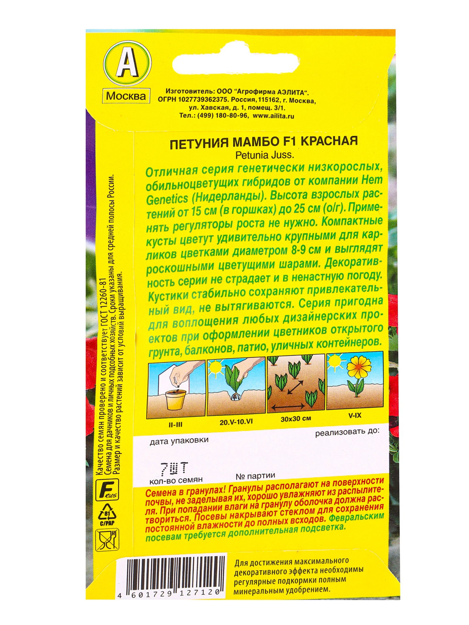 Семена цветов Петуния Мамбо F1 красная многоцветковая, Агрофирма АЭЛИТА, Индонезия