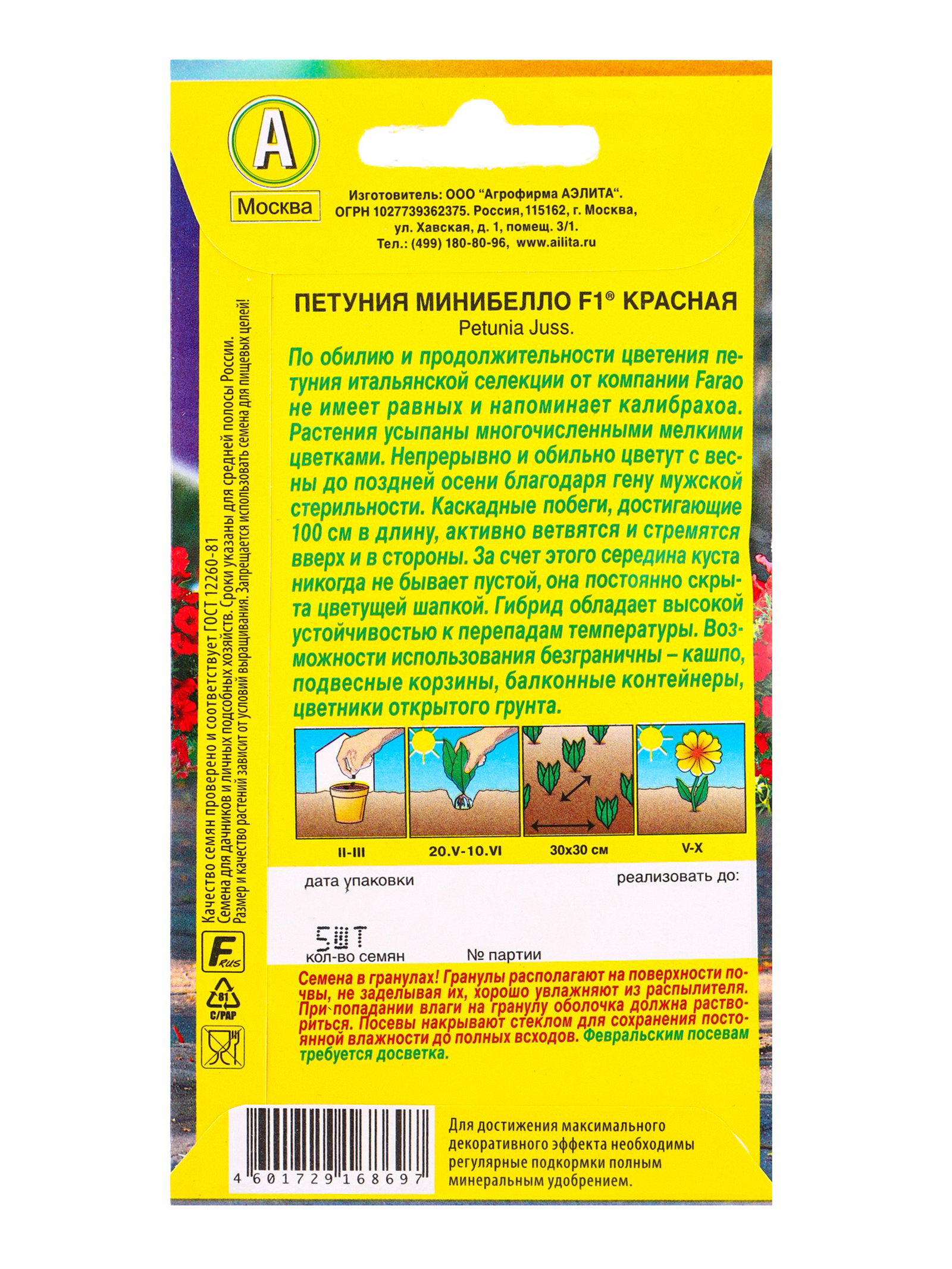 Семена цветов Петуния мини Минибелло F1 красная многоцветковая, Агрофирма АЭЛИТА, Италия