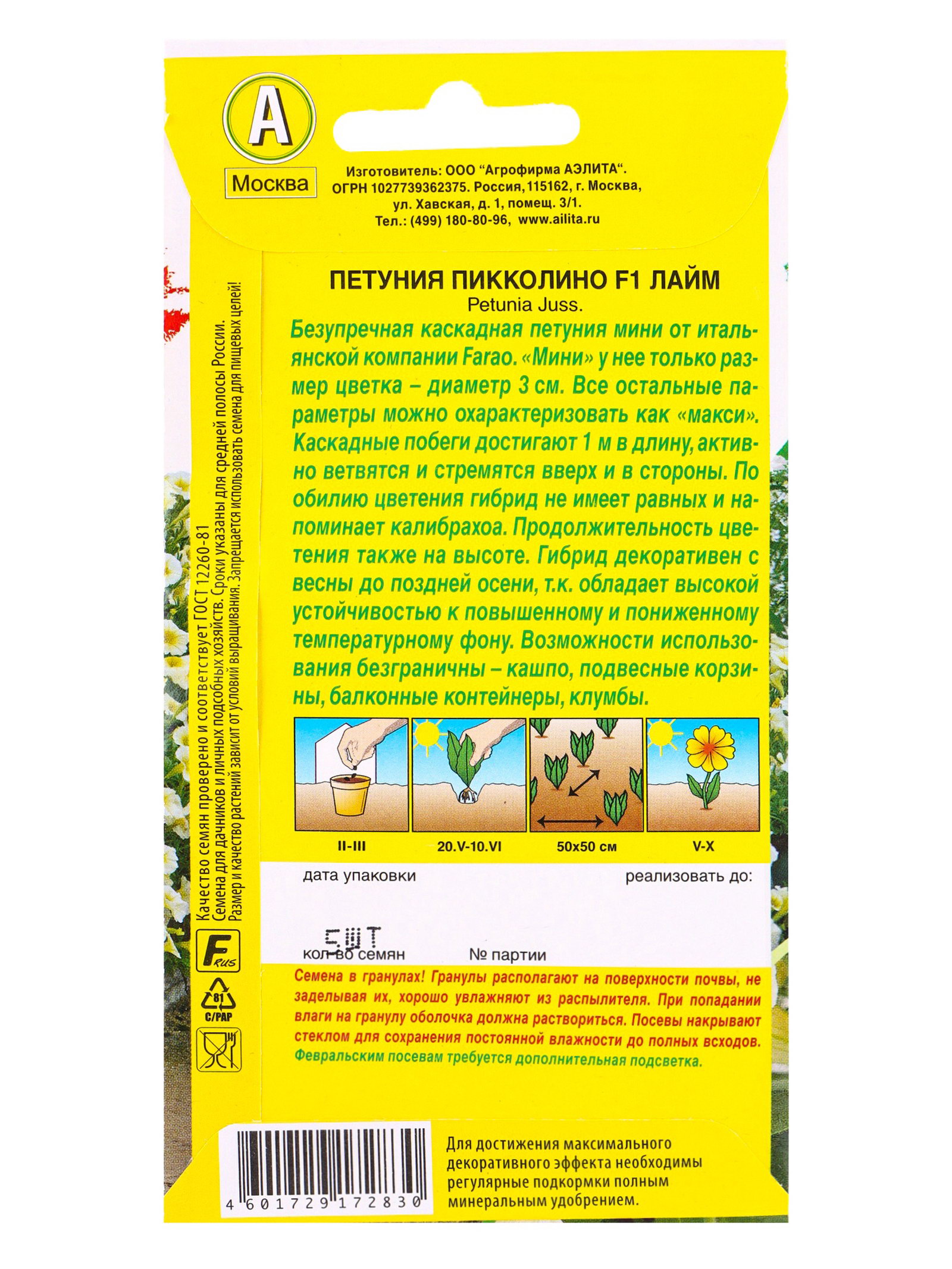 Семена цветов Петуния мини Пикколино F1 лайм, Агрофирма АЭЛИТА, Италия