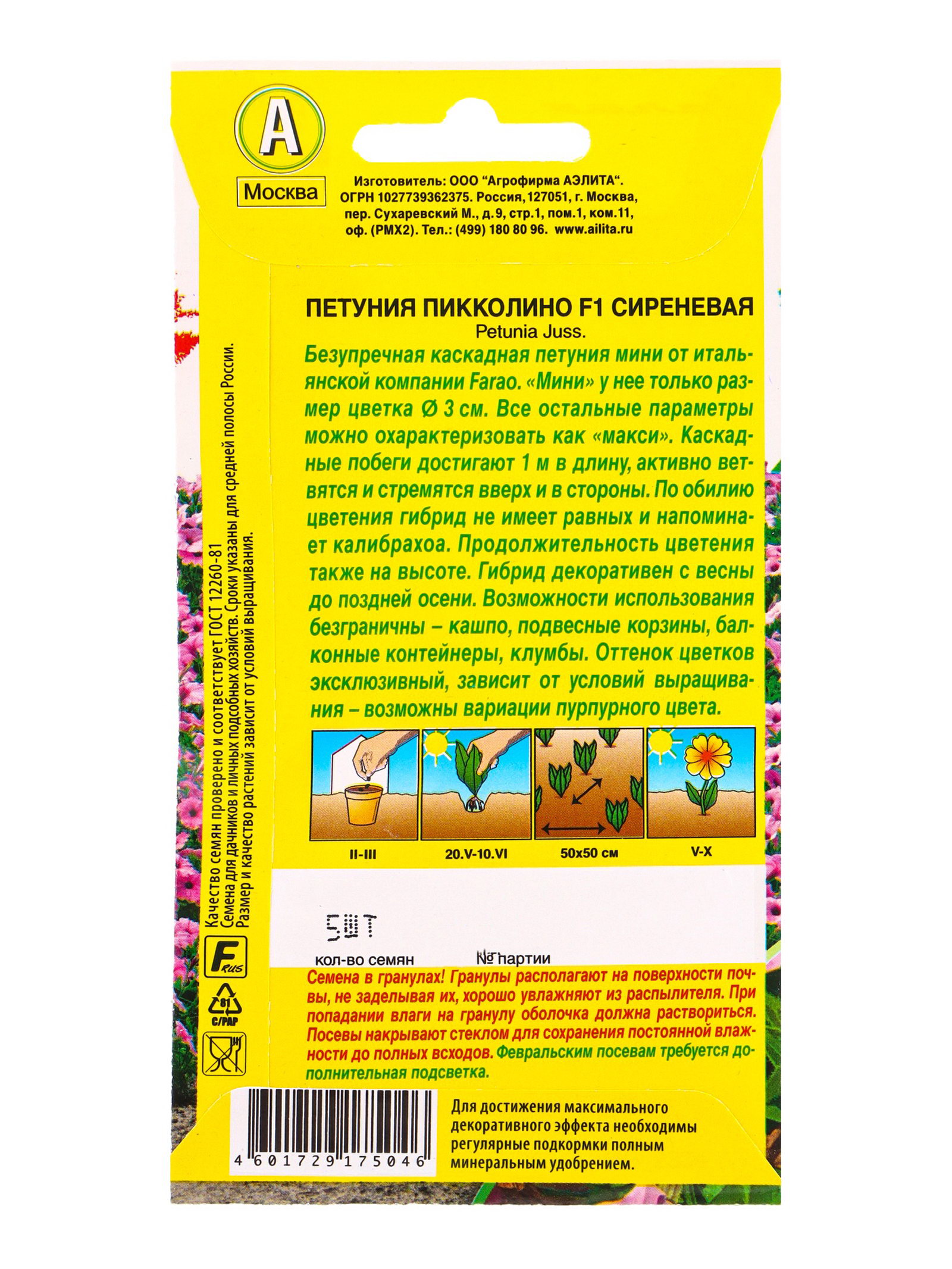 Семена цветов Петуния мини Пикколино F1 сиреневая, Агрофирма АЭЛИТА, Италия