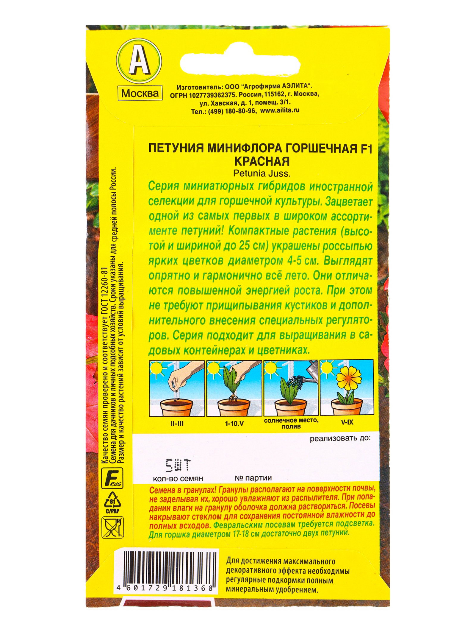 Семена цветов Петуния Минифлора горшечная F1 красная, Агрофирма АЭЛИТА, Гватемала