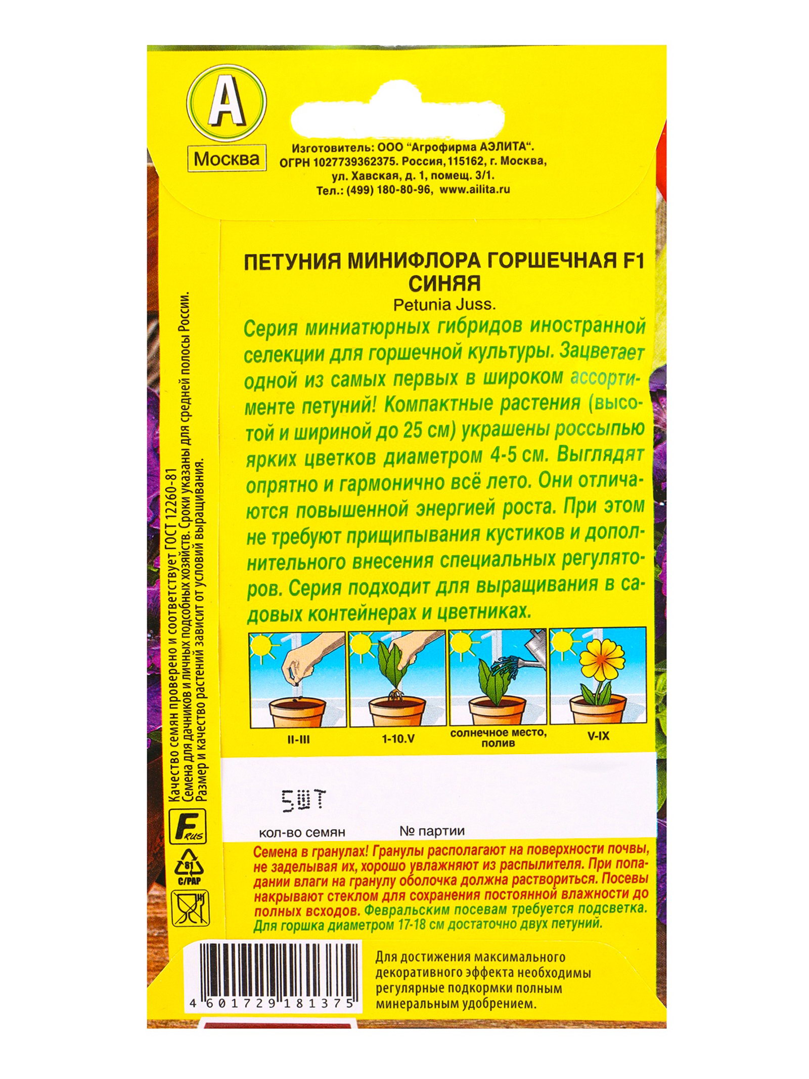 Семена цветов Петуния Минифлора горшечная F1 синяя, Агрофирма АЭЛИТА, Гватемала