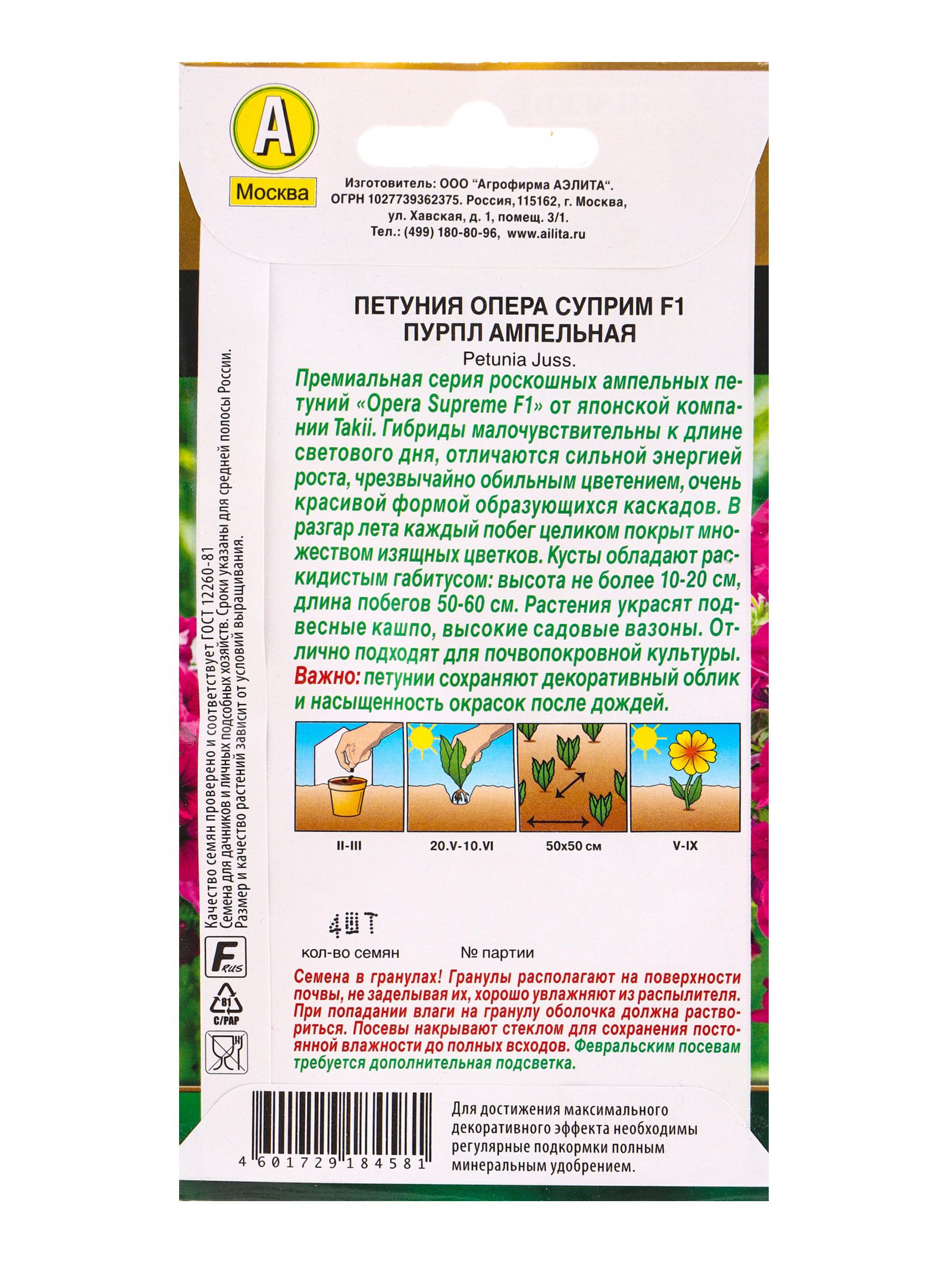 Семена цветов Петуния Опера суприм F1 пурпл ампельная, Агрофирма АЭЛИТА, Вьетнам