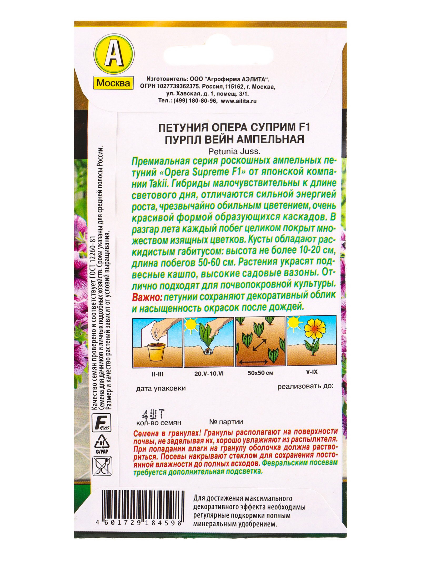 Семена цветов Петуния Опера суприм F1 пурпл вейн ампельная, Агрофирма АЭЛИТА, Чили