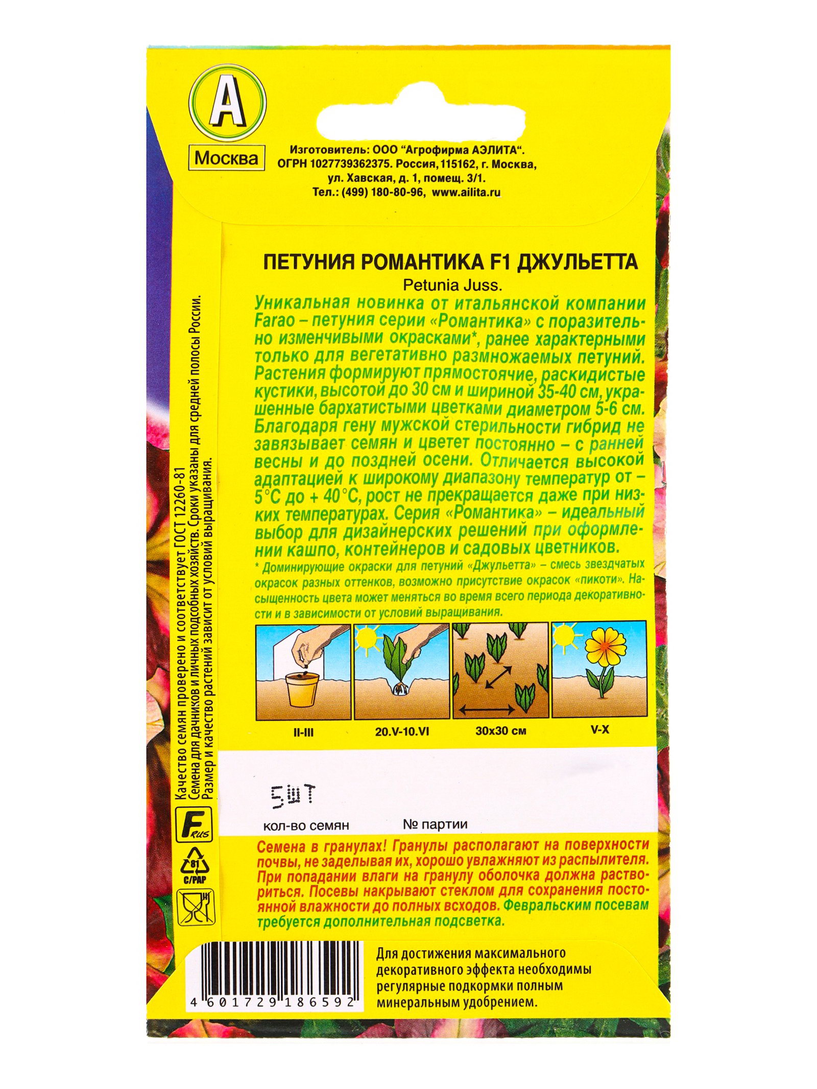 Семена цветов Петуния Романтика F1 джульетта, Агрофирма АЭЛИТА, Италия