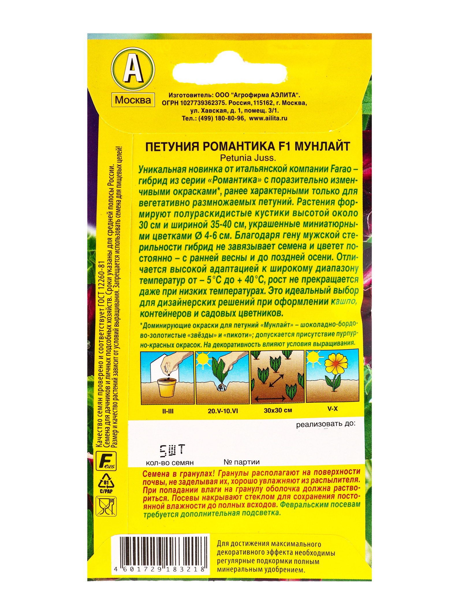 Семена цветов Петуния Романтика F1 мунлайт, Агрофирма АЭЛИТА, Италия
