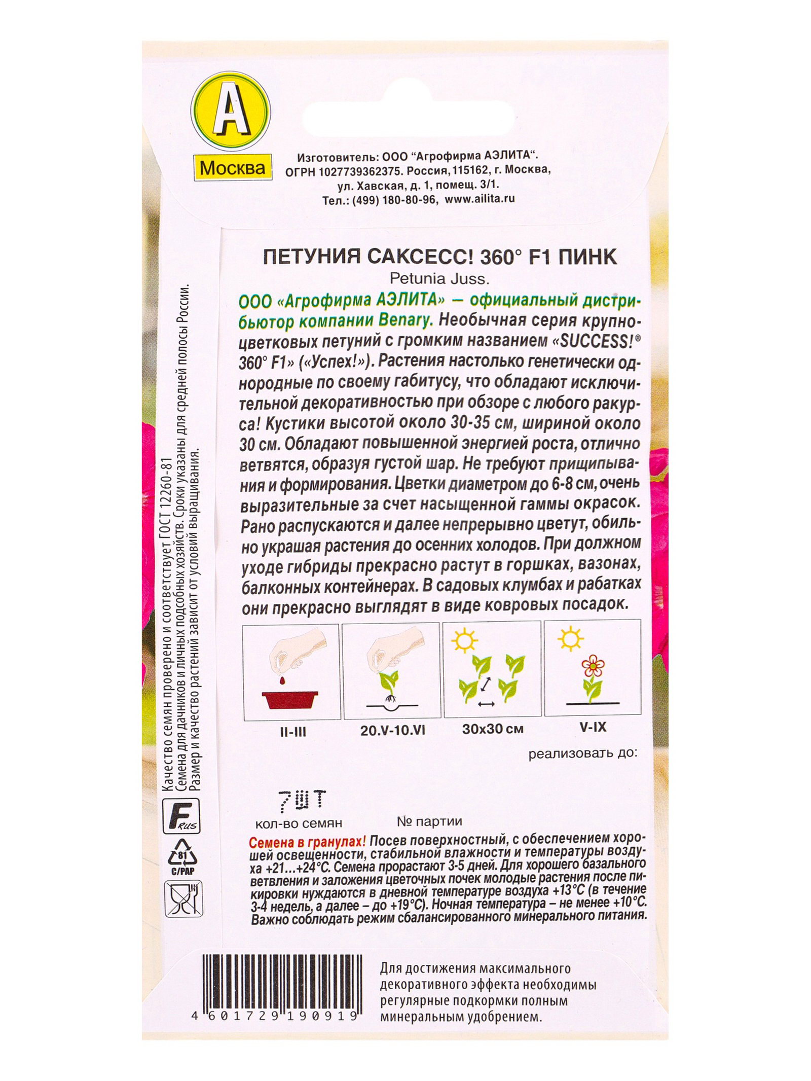 Семена цветов Петуния САКСЕСС! 360° F1 Пинк, Агрофирма АЭЛИТА, Германия