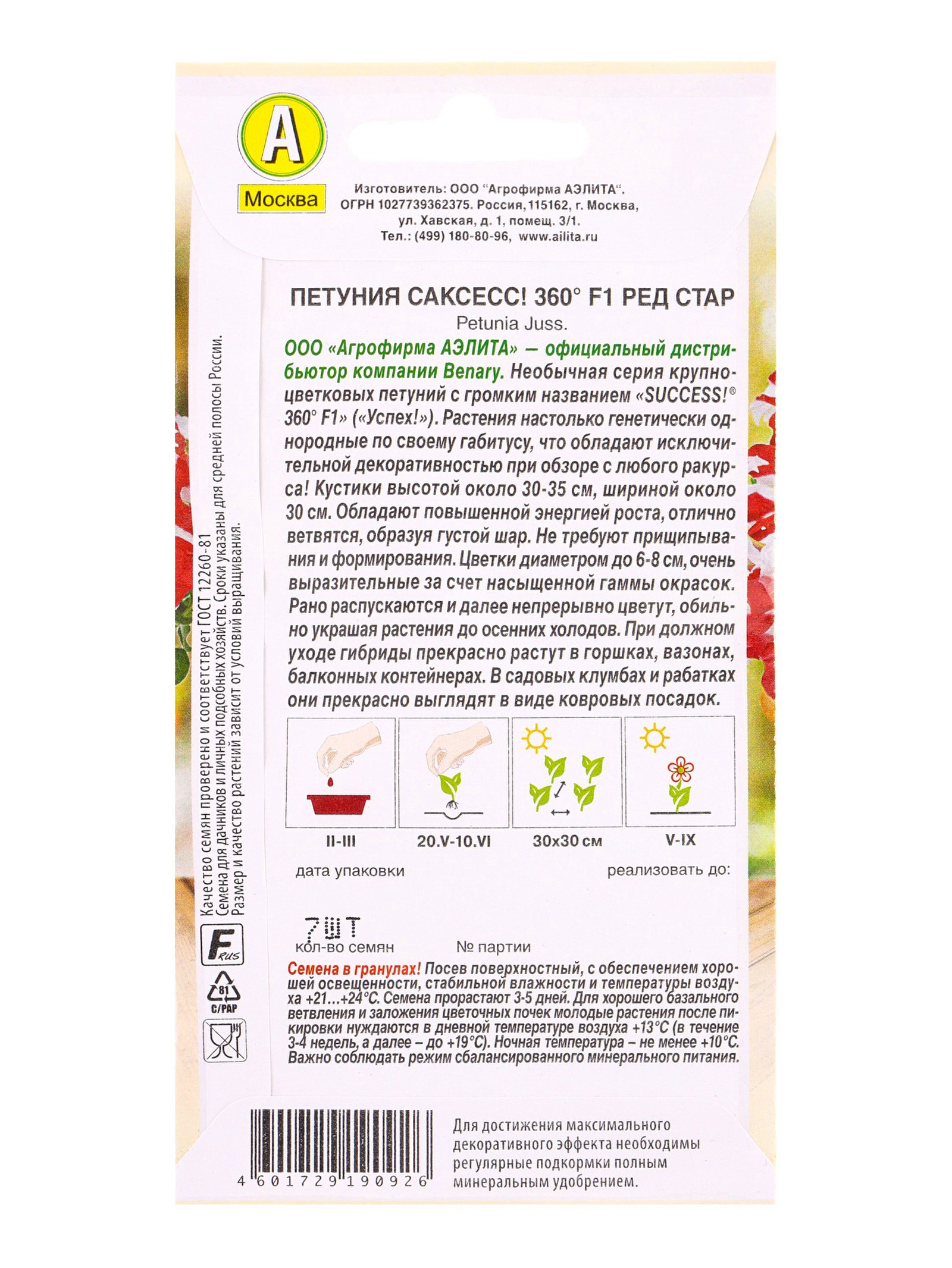 Семена цветов Петуния САКСЕСС! 360° F1 Ред Стар, Агрофирма АЭЛИТА, Германия