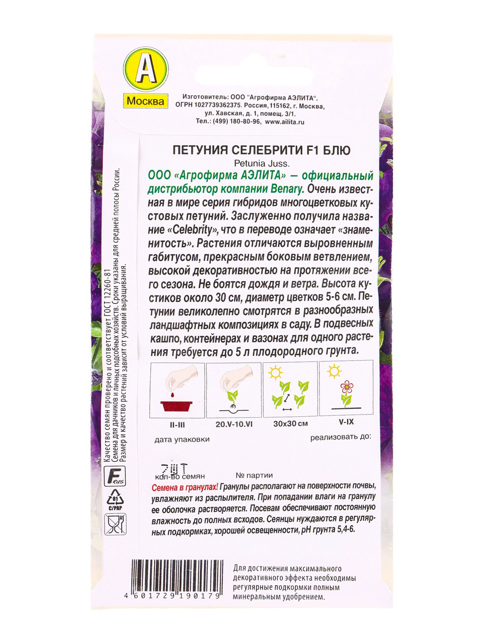 Семена цветов Петуния "Селебрити", F1, многоцветковая, драже, Benary, 7 шт., Агрофирма АЭЛИТА, Германия
