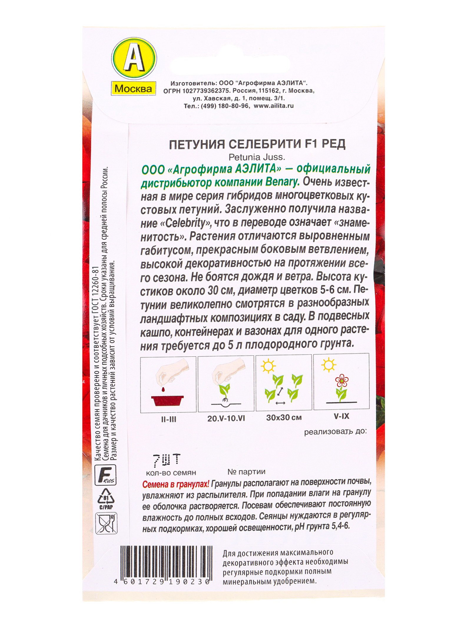 Семена цветов Петуния "Селебрити", F1, красная, многоцветковая, драже, Benary, 7 шт., Агрофирма АЭЛИТА, Германия