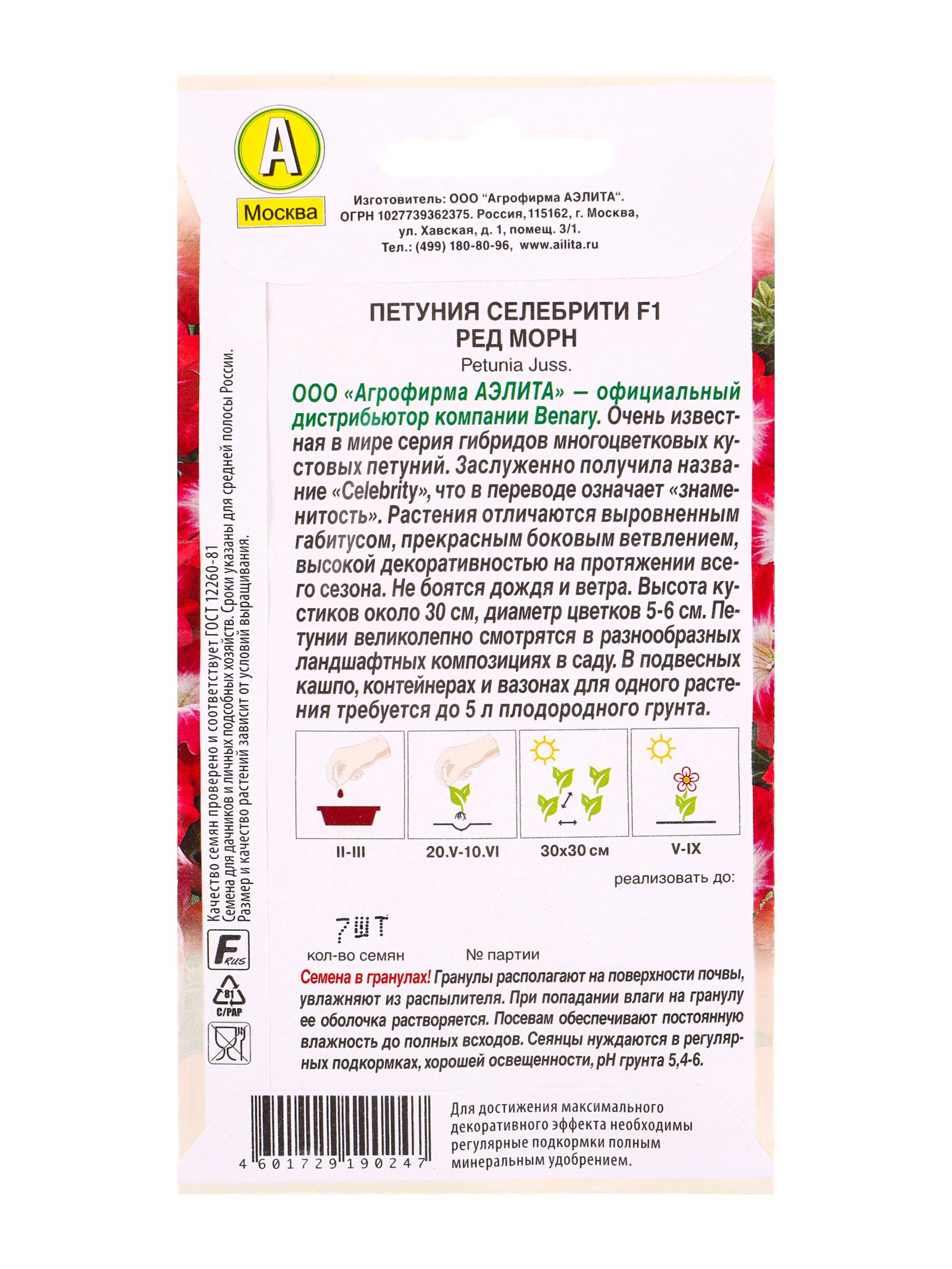 Семена цветов Петуния "Селебрити", F1, многоцветковая, драже, Benary, 7 шт., Агрофирма АЭЛИТА, Германия