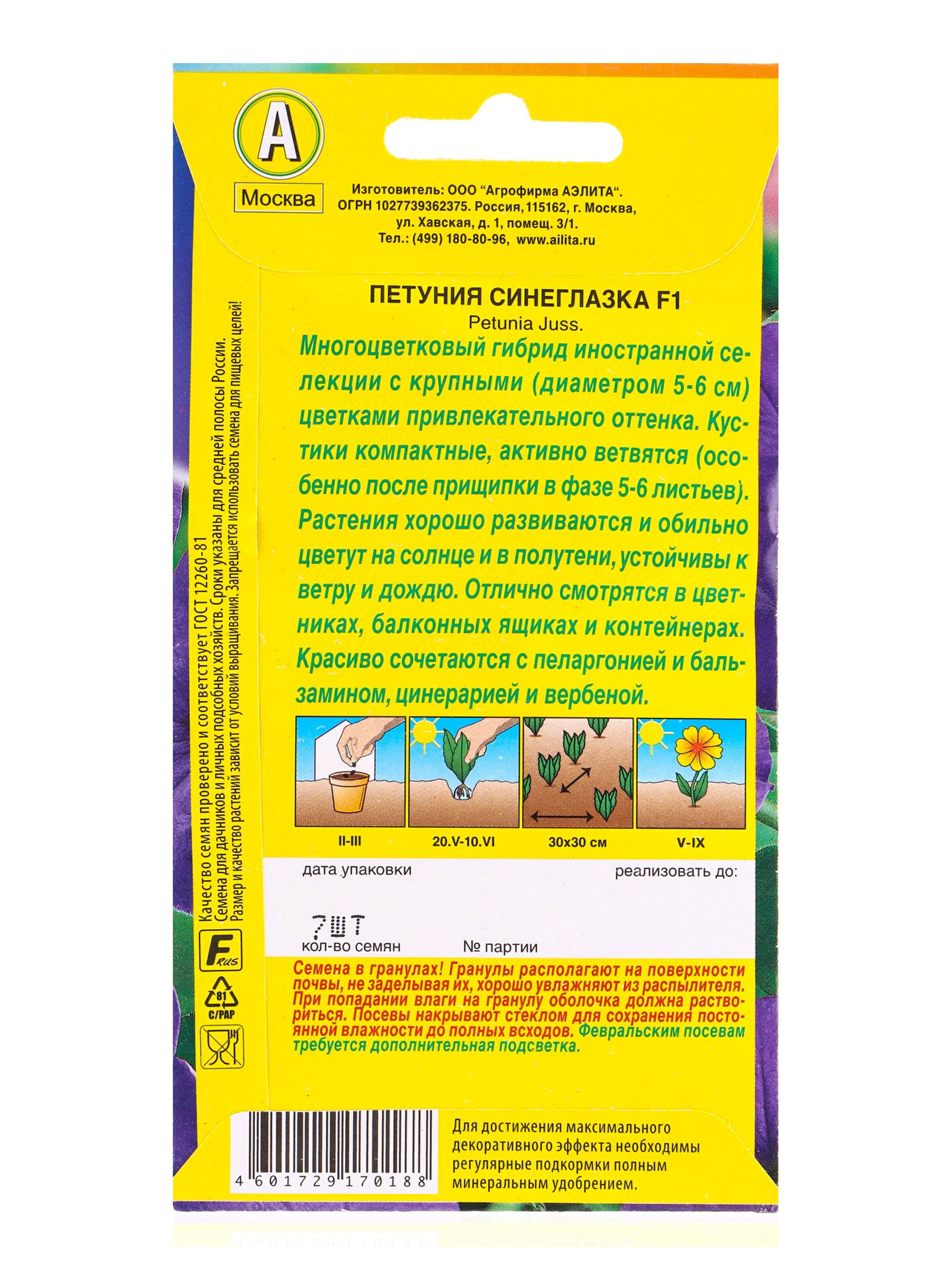Семена цветов Петуния Синеглазка F1 многоцветковая, Агрофирма АЭЛИТА, Чехия