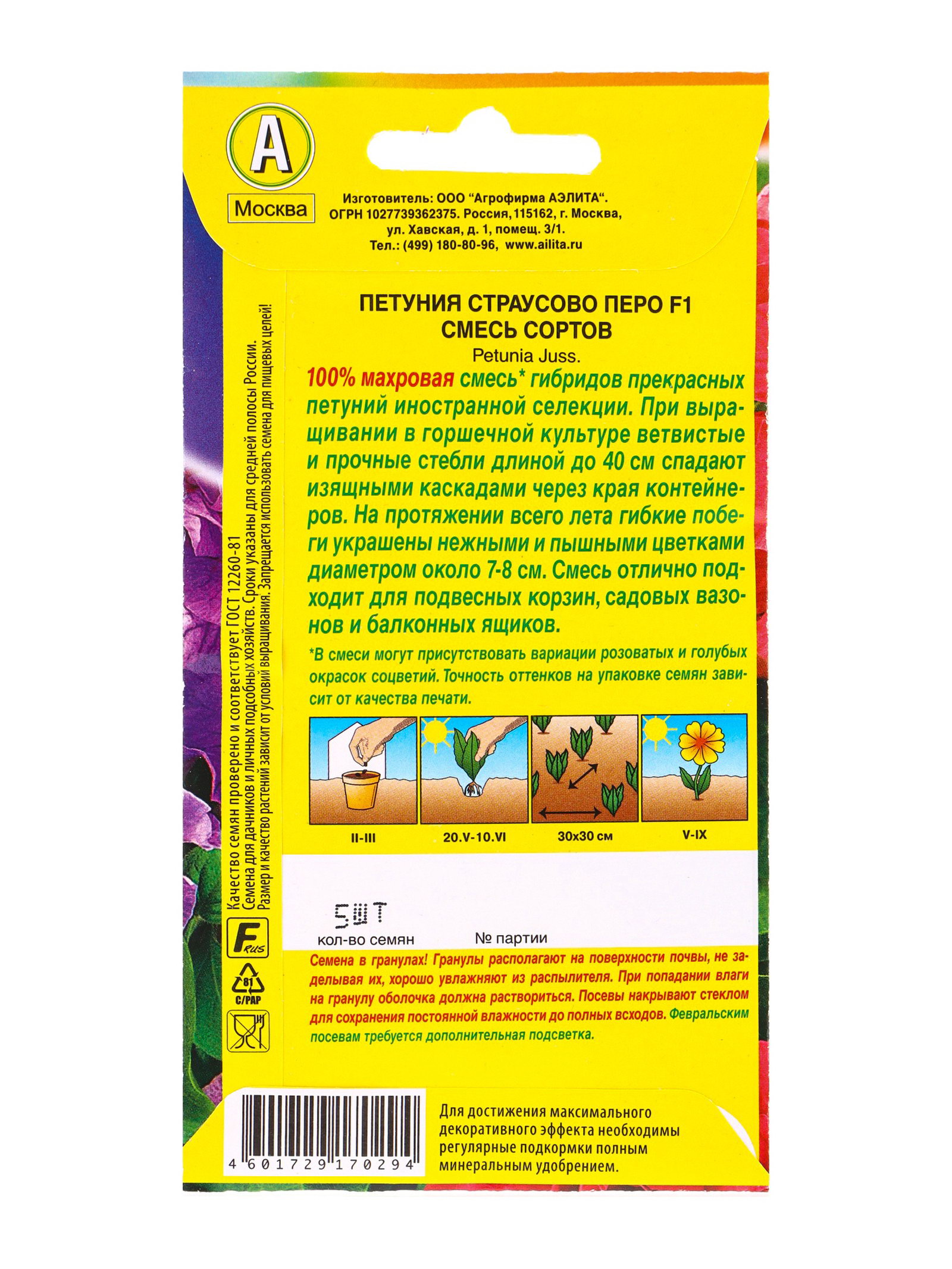 Семена цветов Петуния Страусово перо F1 махровая, смесь сортов, Агрофирма АЭЛИТА, Коста-Рика