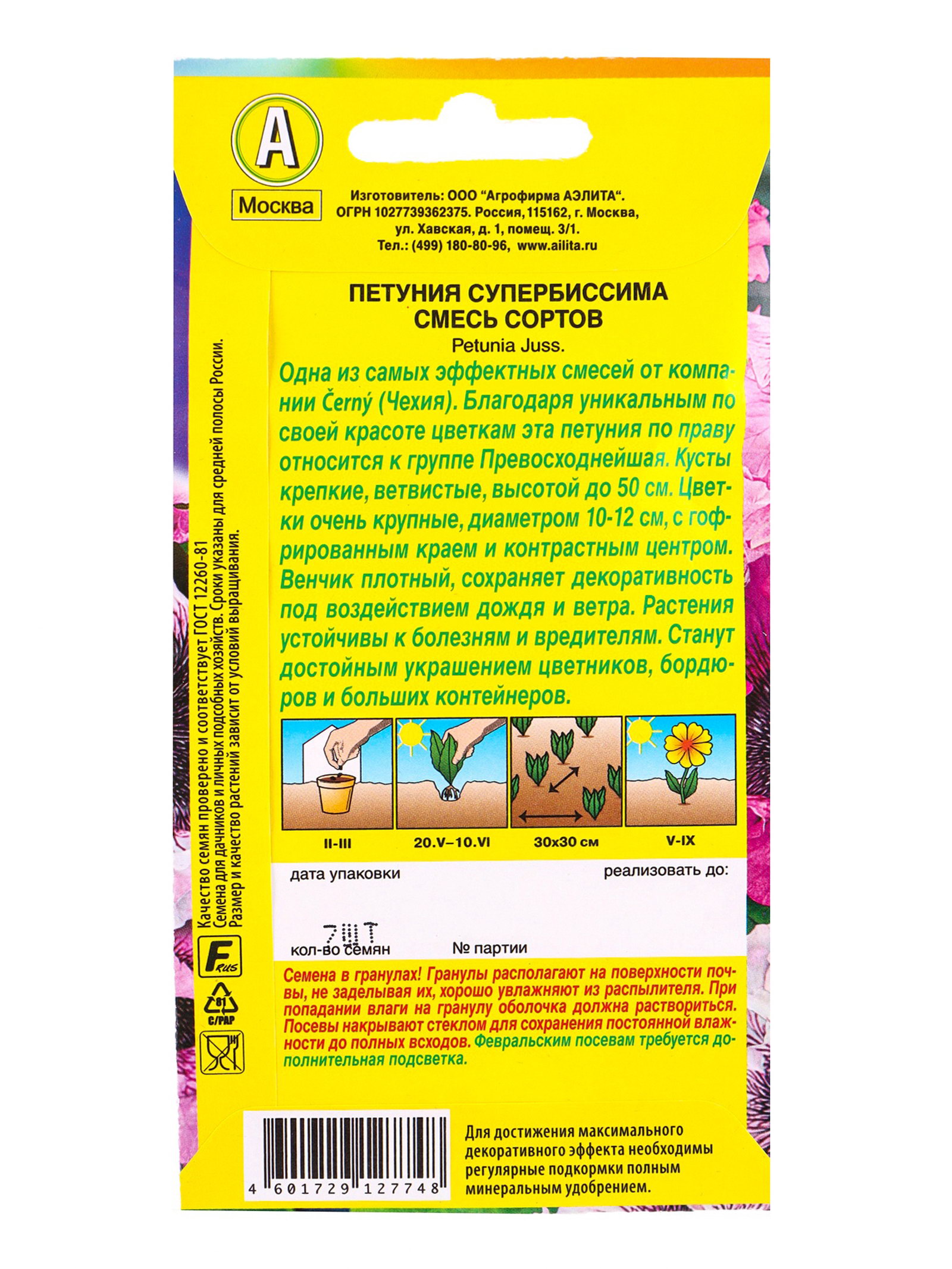 Семена цветов Петуния Супербиссима крупноцветковая, смесь сортов, Агрофирма АЭЛИТА, Чехия