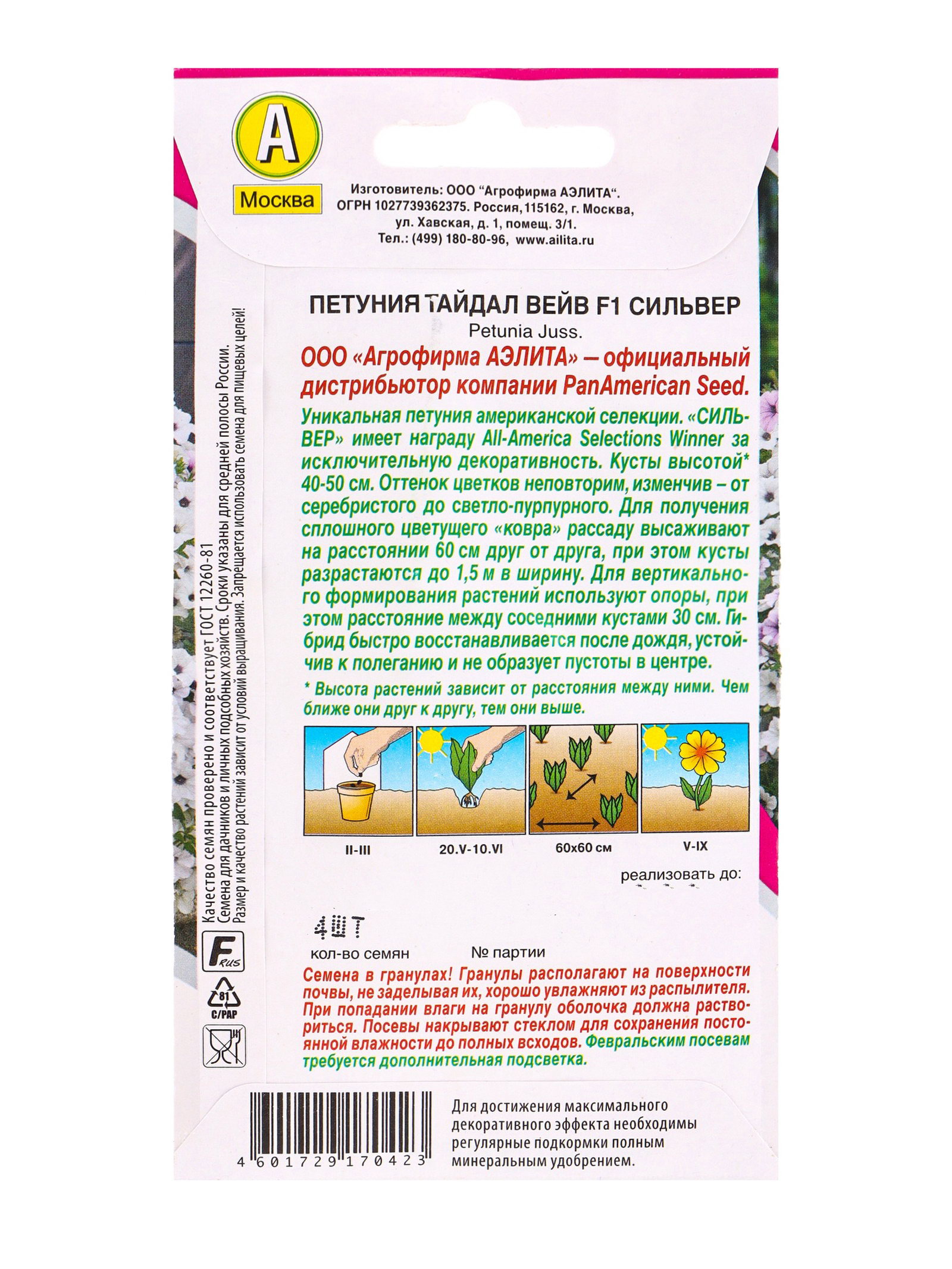 Семена цветов Петуния Тайдал Вейв F1 сильвер, Агрофирма АЭЛИТА, Коста-Рика