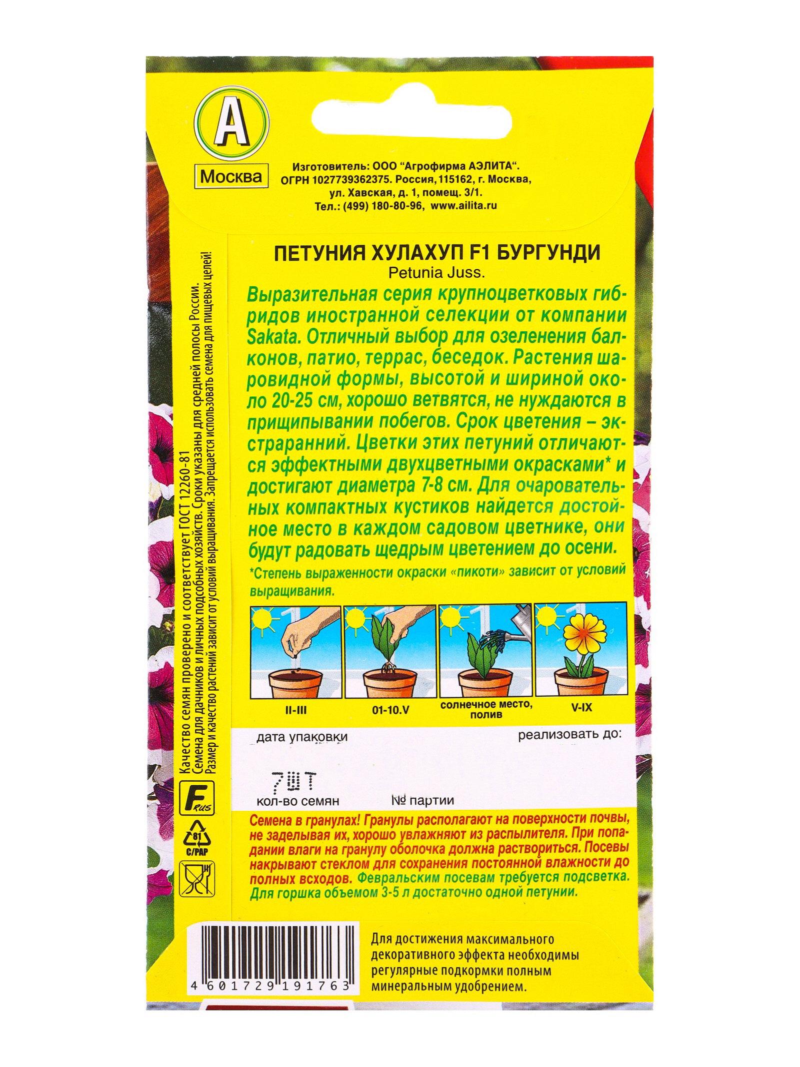 Семена цветов Петуния Хулахуп F1 бургунди, Агрофирма АЭЛИТА, Коста-Рика