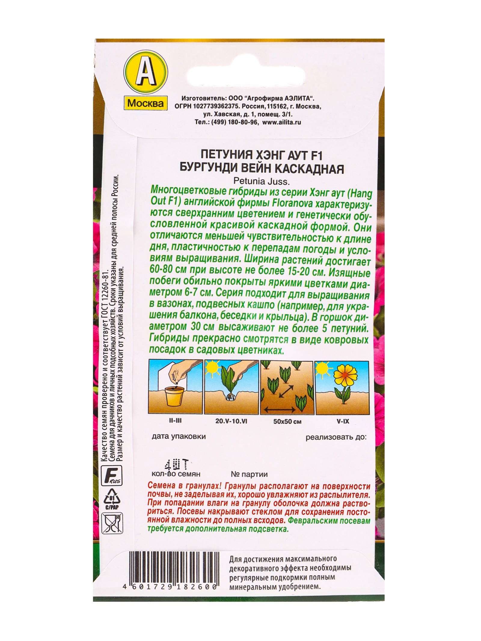 Семена цветов Петуния Хэнг аут F1 бургунди вейн каскадная, Агрофирма АЭЛИТА, Гватемала