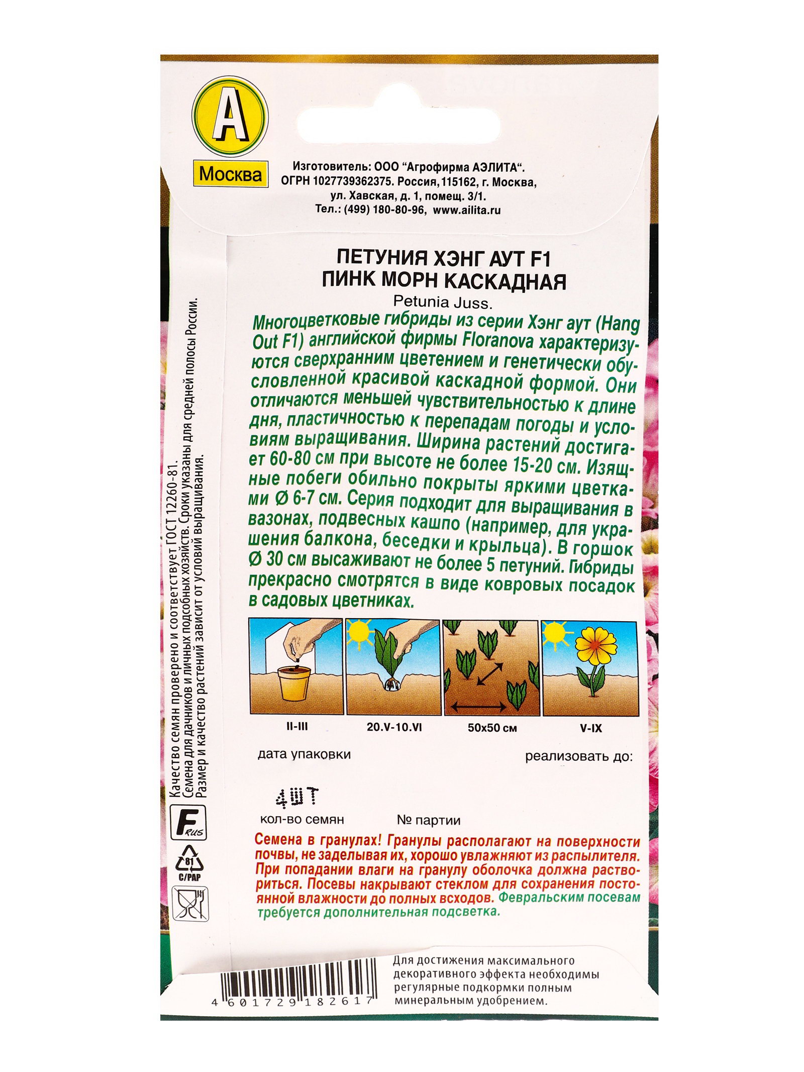 Семена цветов Петуния Хэнг аут F1 пинк морн каскадная, Агрофирма АЭЛИТА, Гватемала