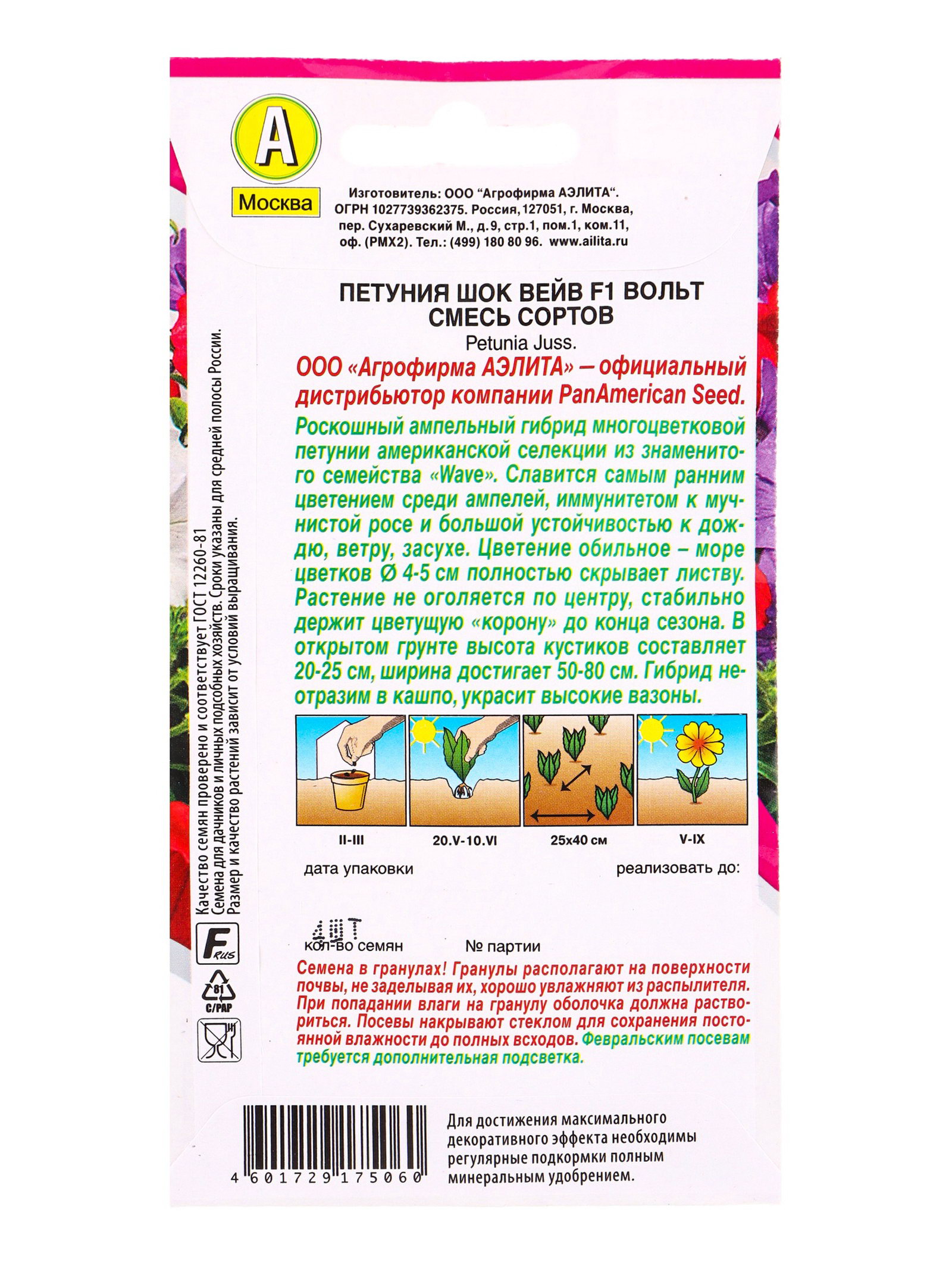 Семена цветов Петуния Шок вейв F1 вольт, смесь сортов, Агрофирма АЭЛИТА, Коста-Рика