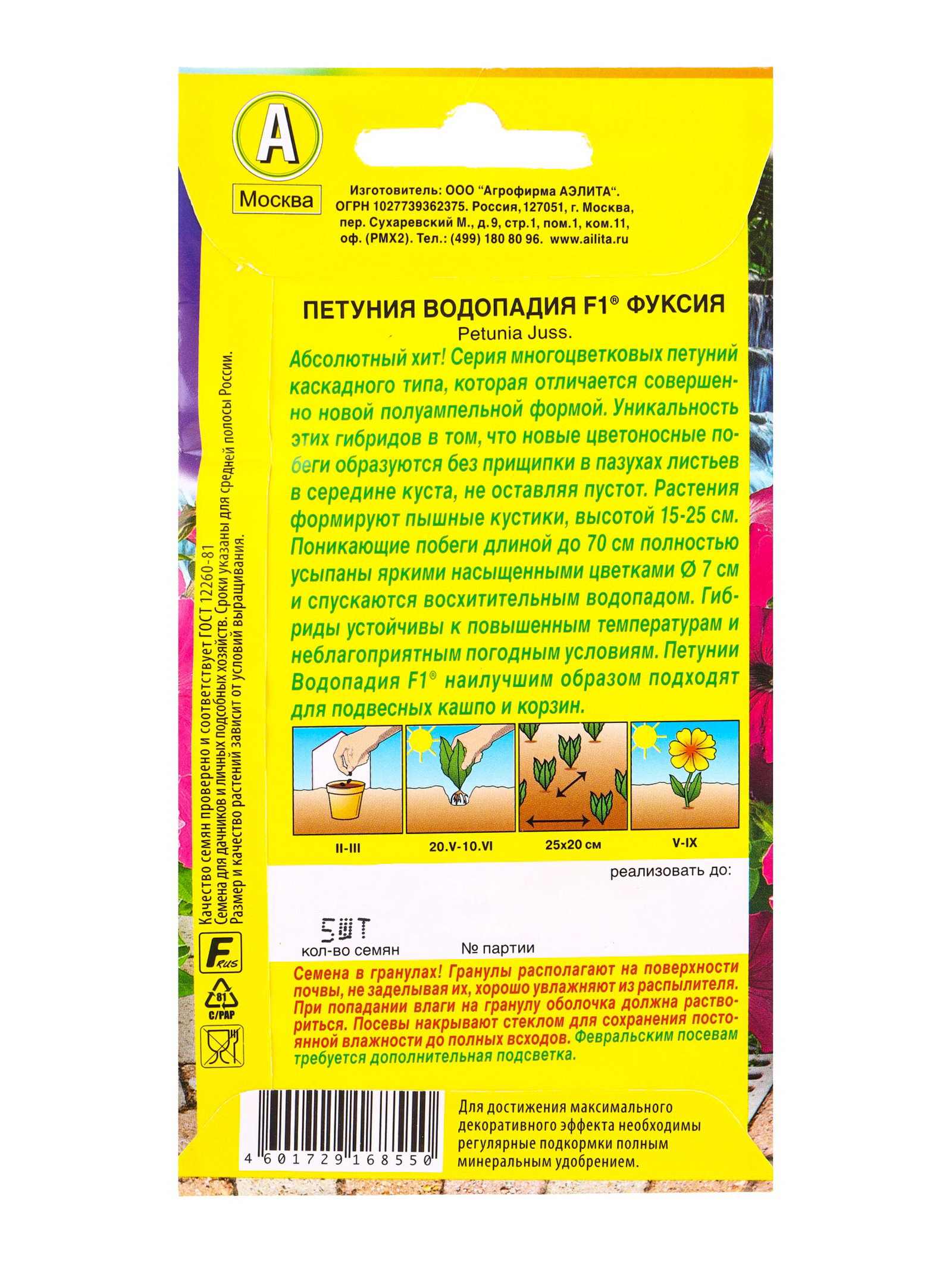 Семена цветов Петуния "Водопадия", F1, фуксия, драже в пробирке, 5 шт., Агрофирма АЭЛИТА, Италия