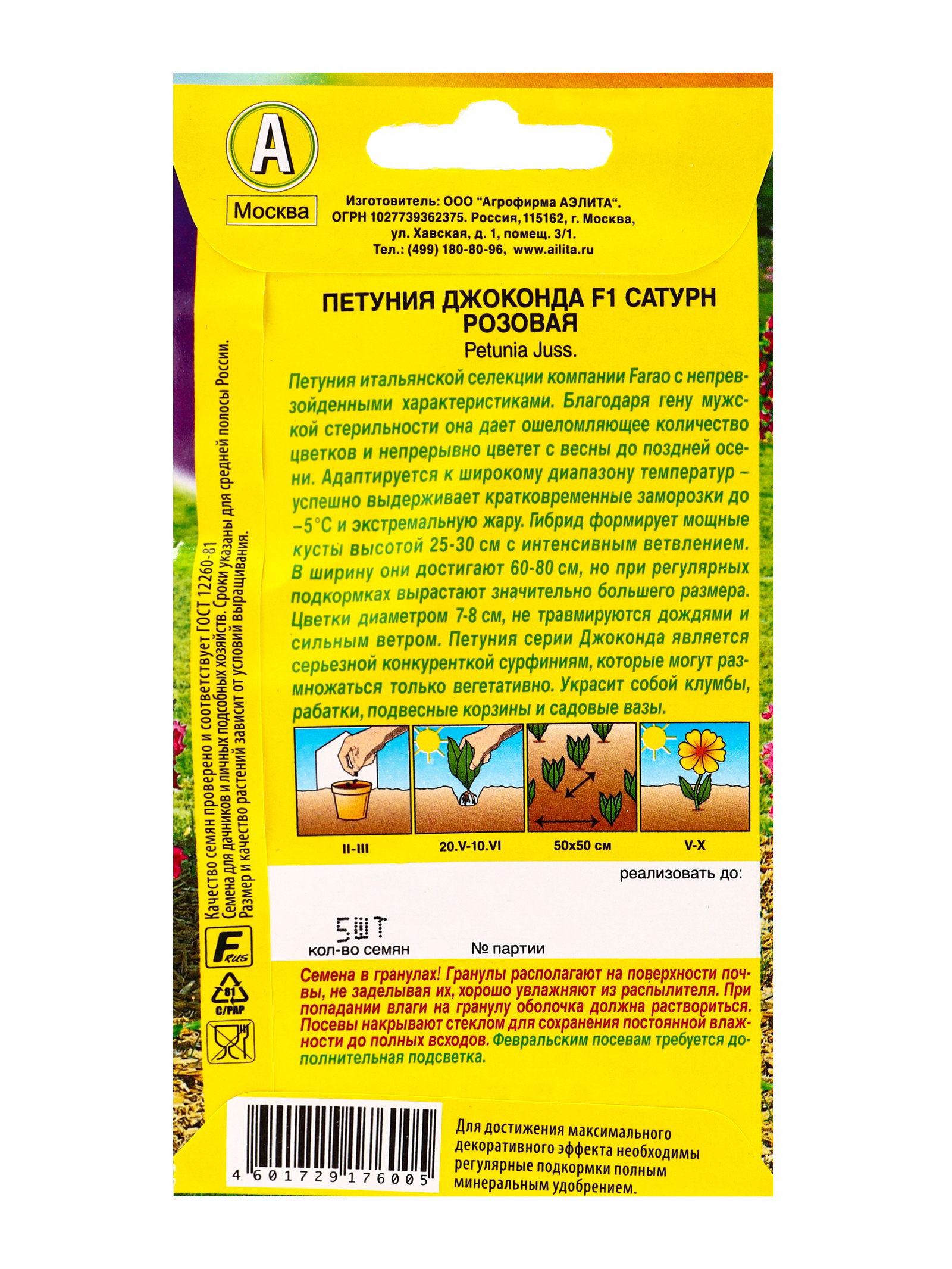 Цветение период: Август, Июль, Июнь, Май, Октябрь, Сентябрь Посев на рассаду: Март, Февраль Посев (посадка) в грунт: Июнь, Май Назначение: Для балкона, веранды, Для создания цветников, клумбы Размер упаковки: 8 x 0.3 x 15 см. tnved: 1209918000 Температурное ограничение: Нет Цвет: Розовый Сухоцвет: Нет Махровые: Нет Место выращивания: Открытый грунт Нуждаются ли в стратификации: Нет Вегетация: Однолетники Вид: Петуния По форме куста: Кустовая Высота растений: До 30 см Отношение к свету: Светолюбивые | ||