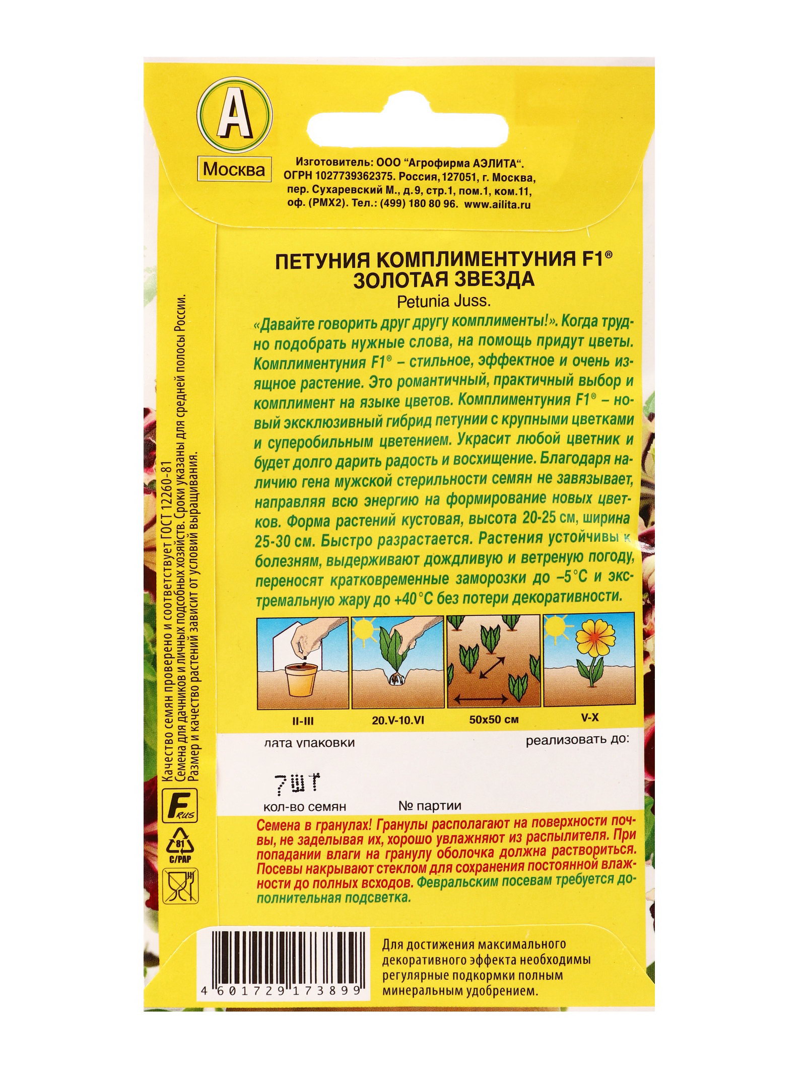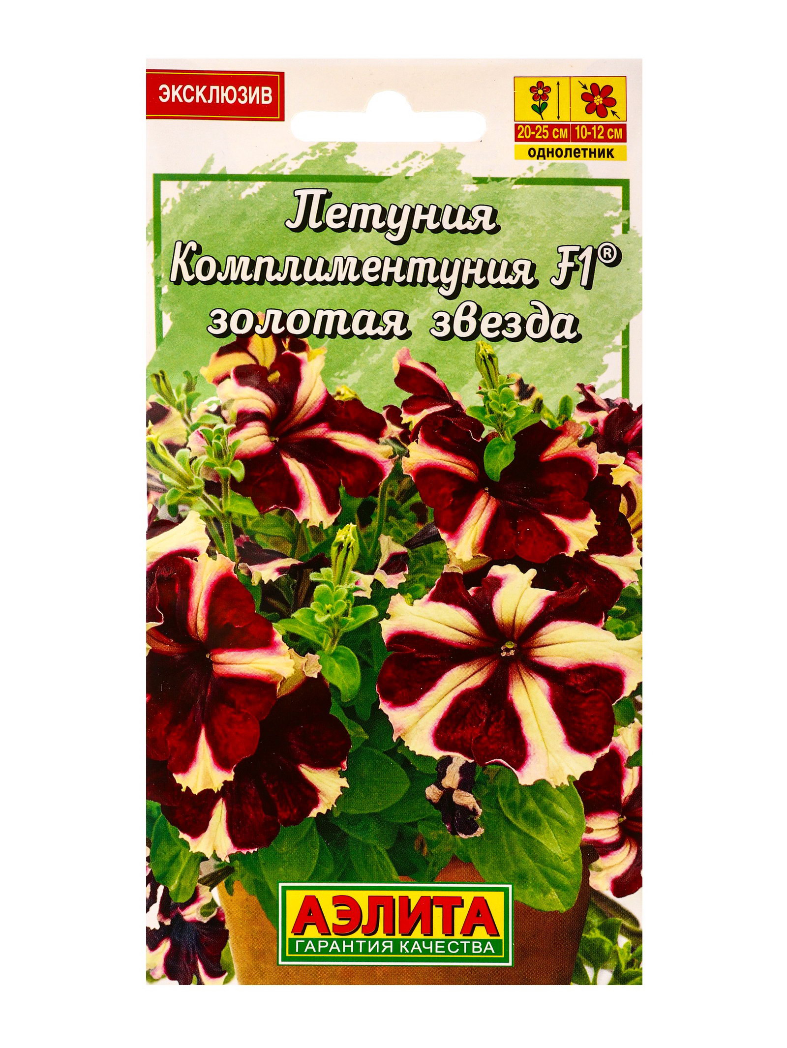Семена цветов Петуния "Комплиментуния", F1, золотая звезда, драже в пробирке, 7 шт., Агрофирма АЭЛИТА, Италия