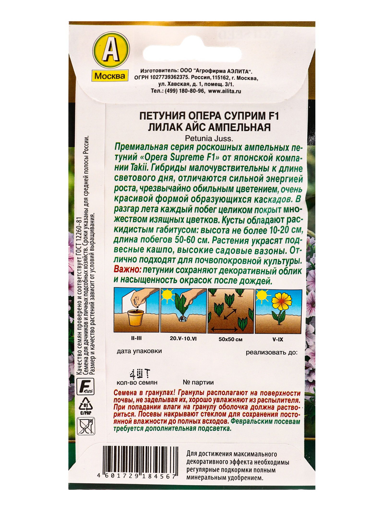 Семена цветов Петуния "Опера суприм", F1, лилак айс ампельная, драже, Takii Seed, 4 шт., Агрофирма АЭЛИТА, Чили