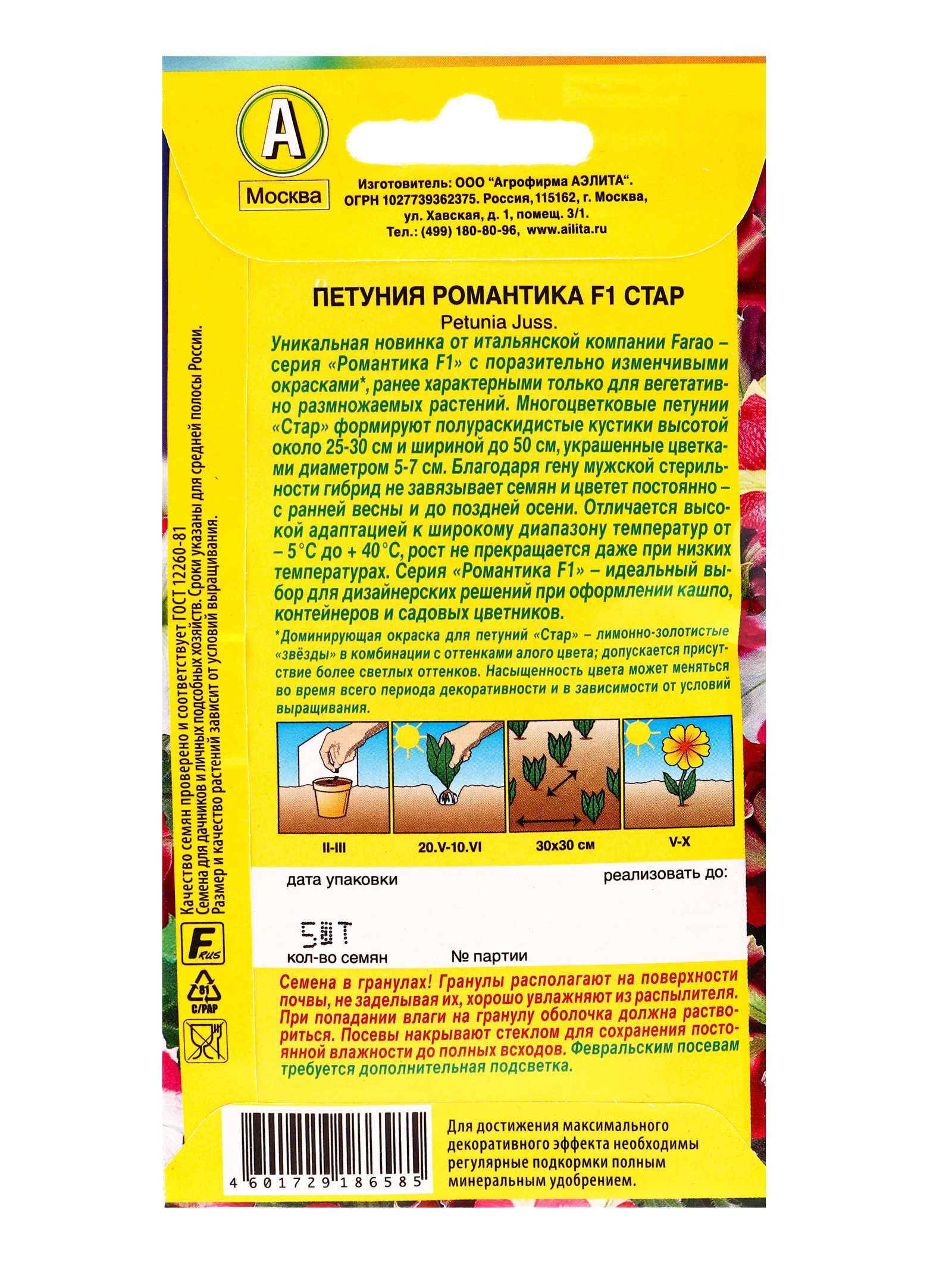 Семена цветов Петуния "Романтика", F1, стар, драже в пробирке, Farao, 5 шт., Агрофирма АЭЛИТА, Италия
