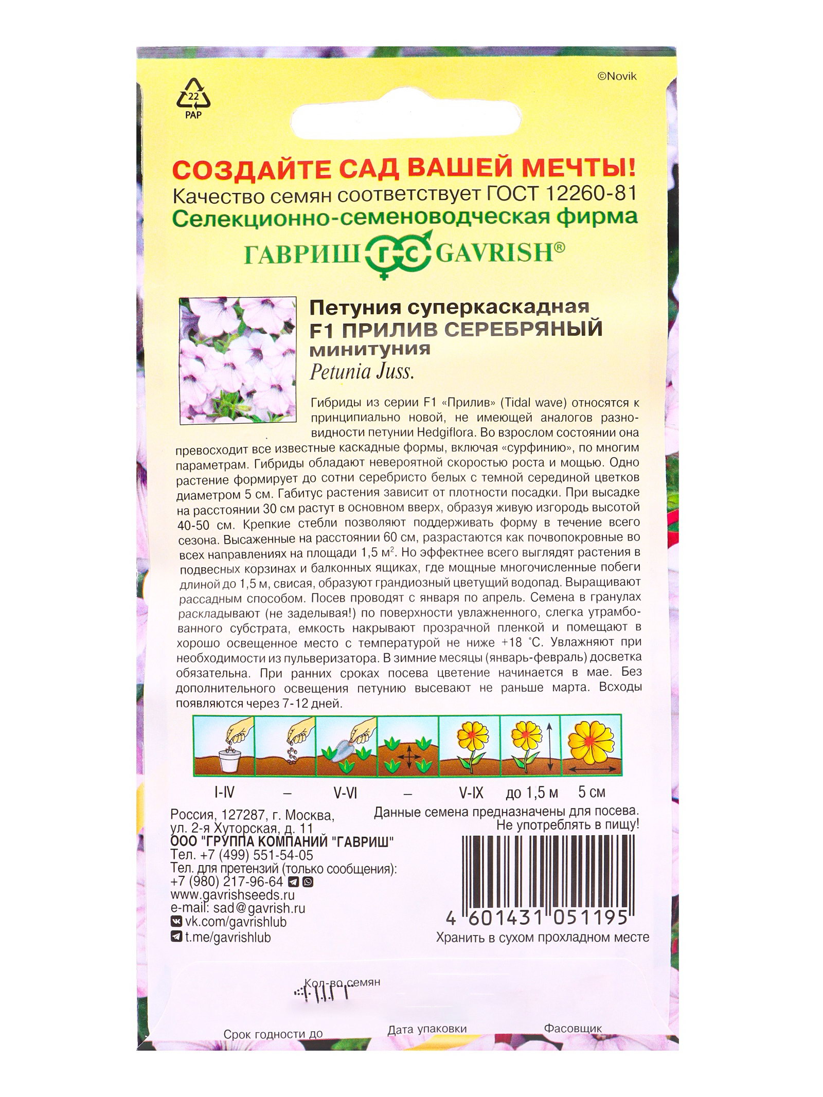 Семена цветов Петуния Прилив Серебряный F1, Гавриш, Россия